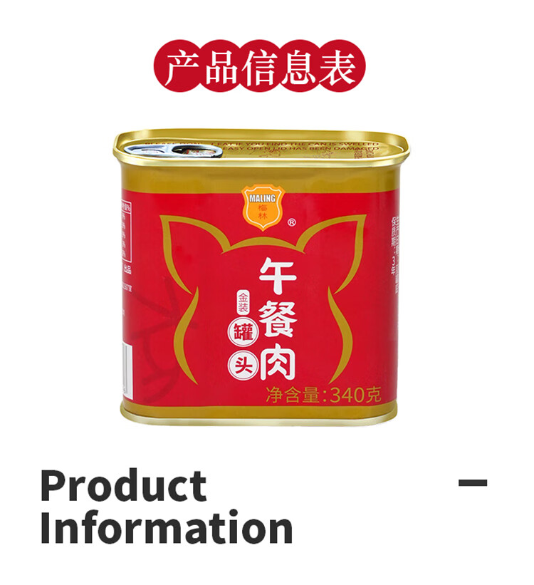 中粮梅林金装午餐肉罐头340g*3罐 小恐龙