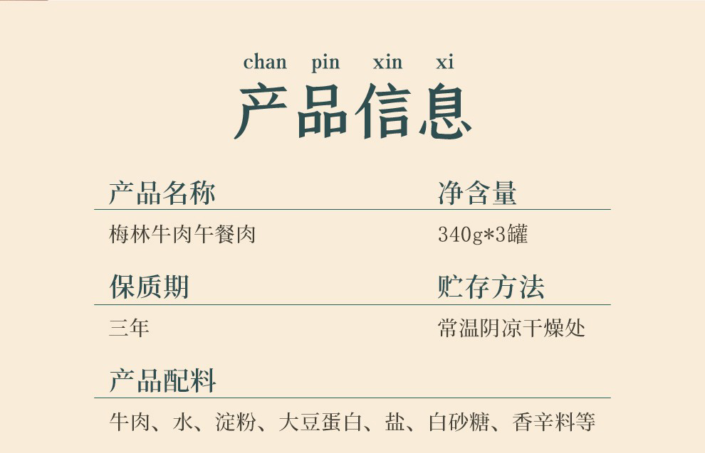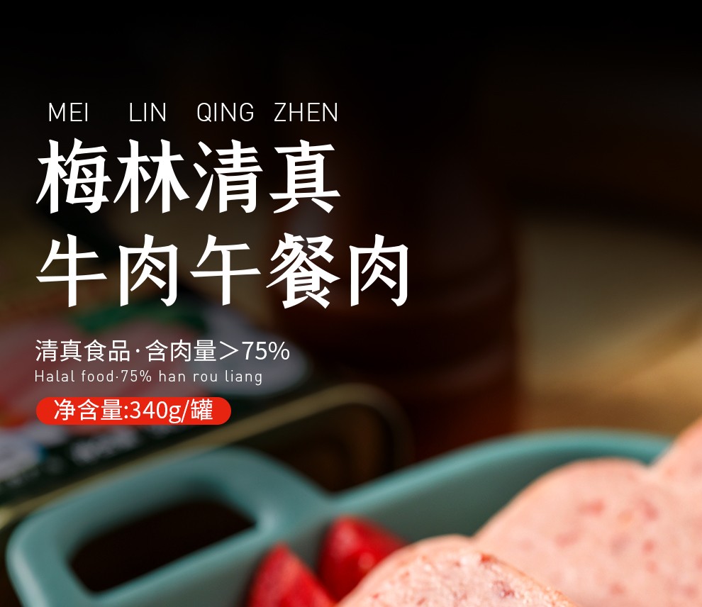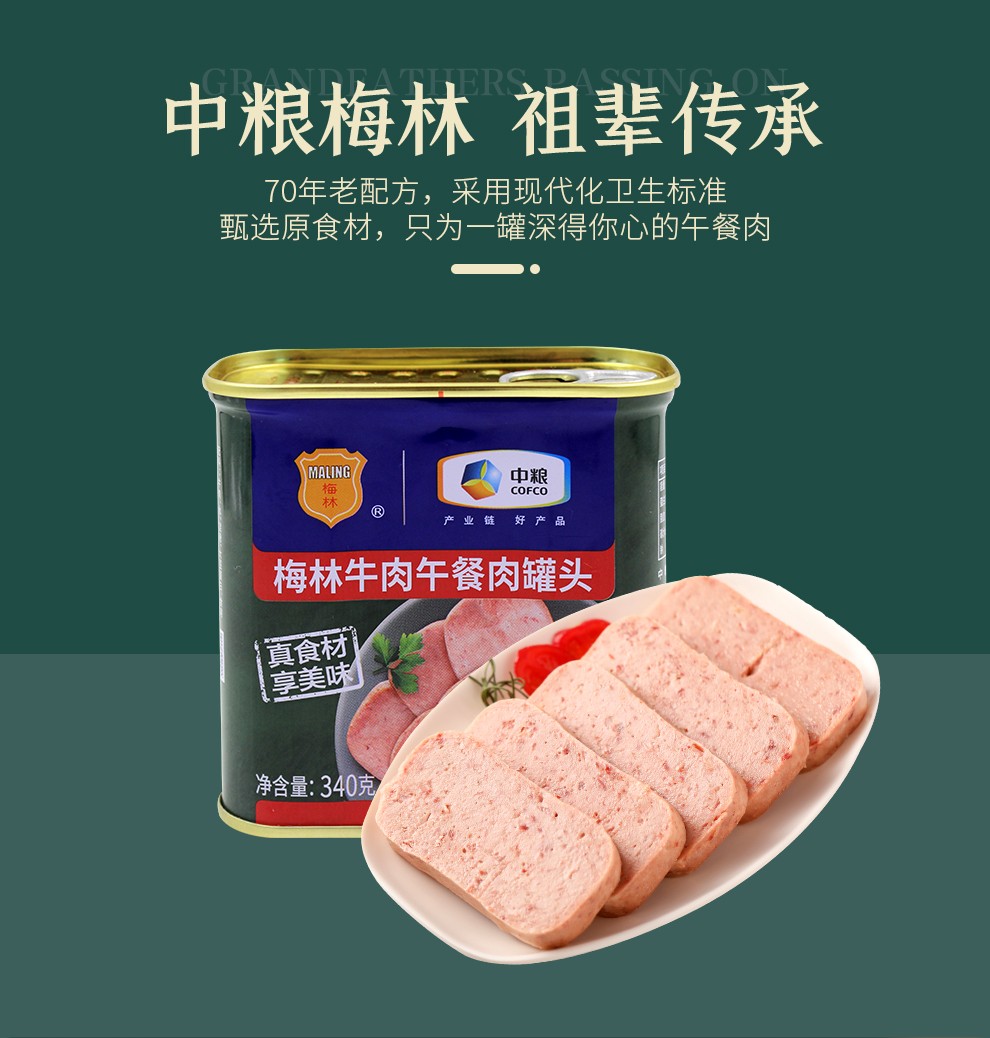 中粮梅林清真牛肉午餐肉罐头340g*2罐 混色