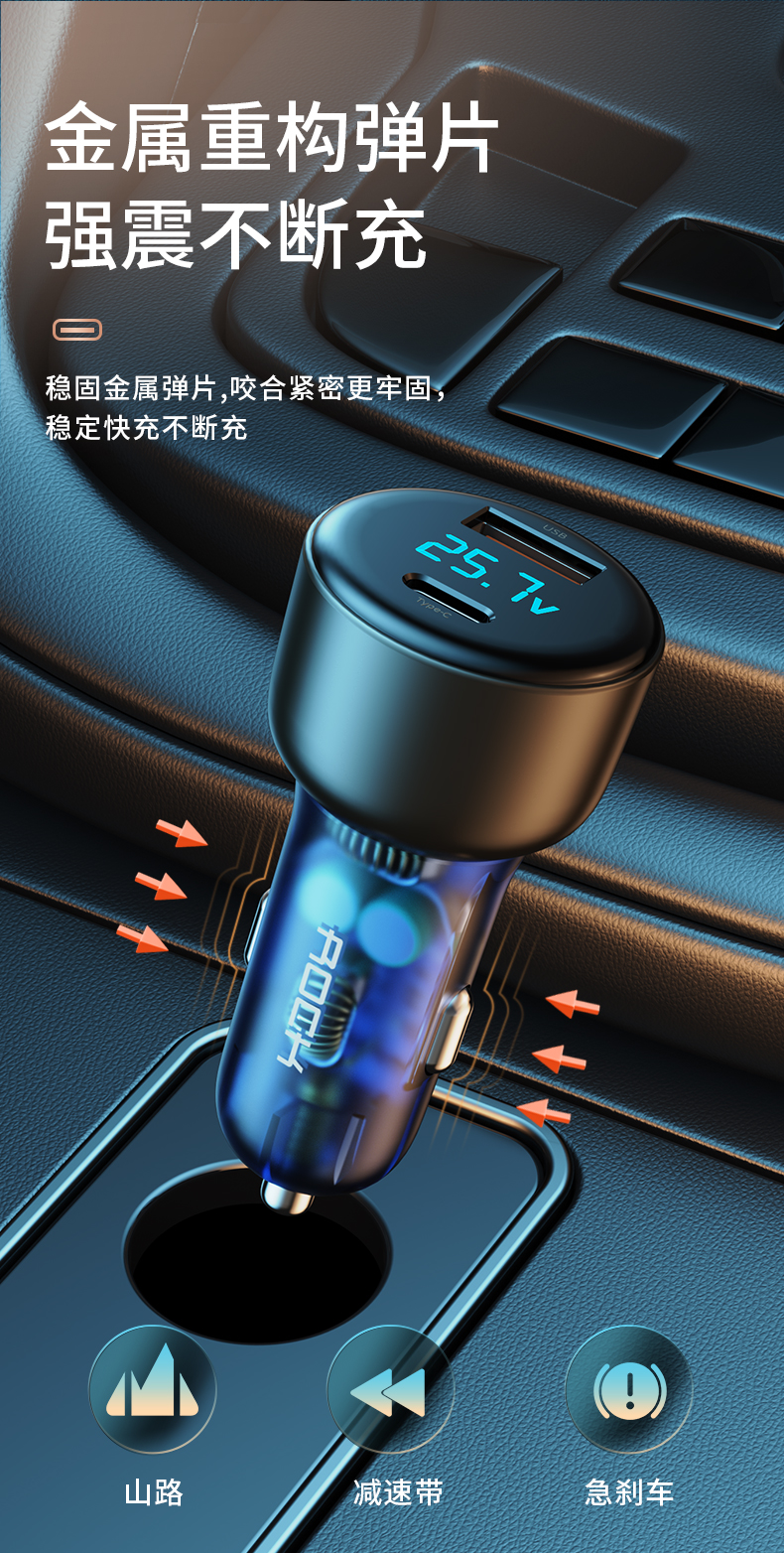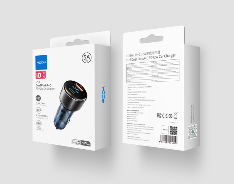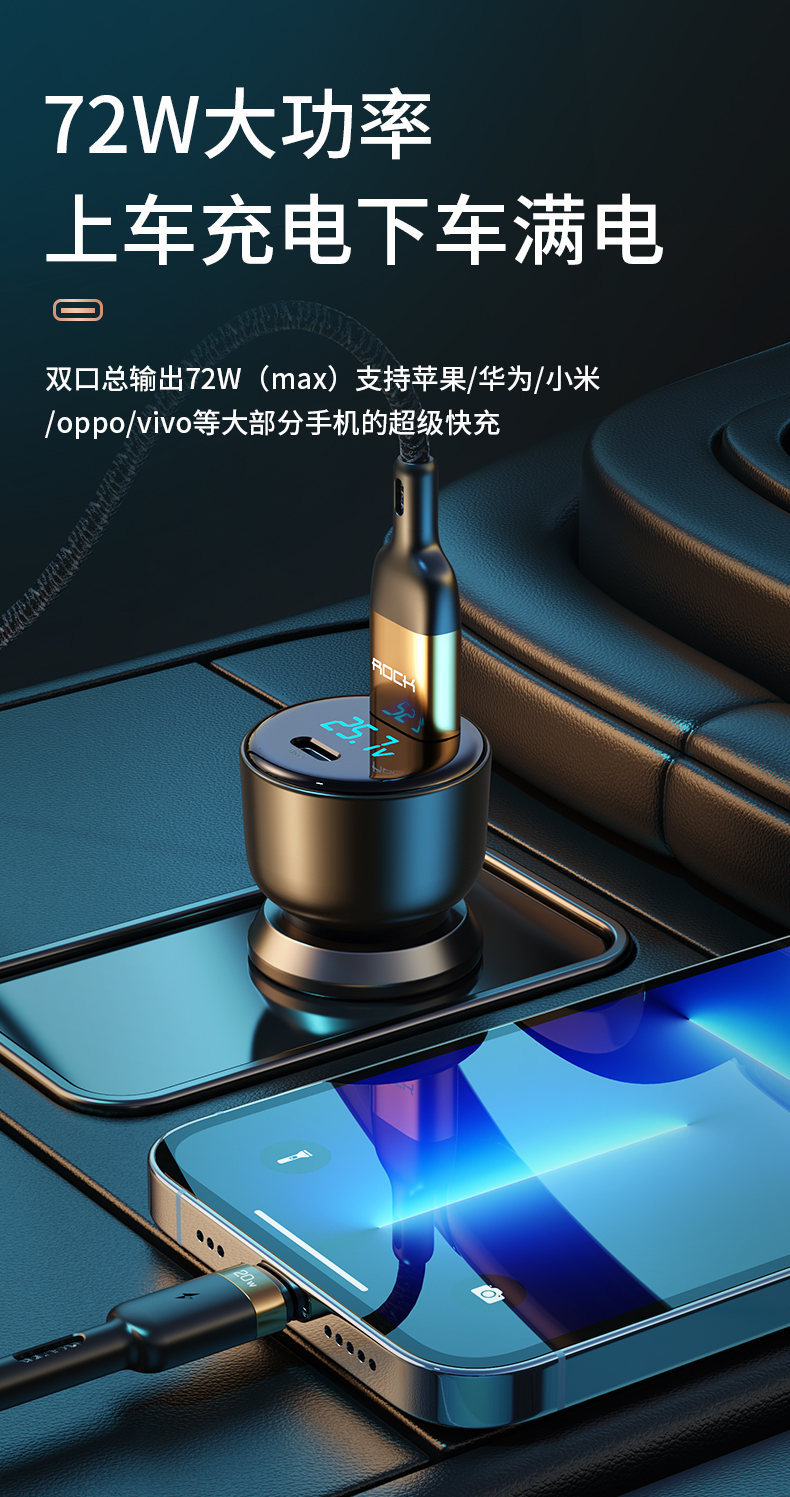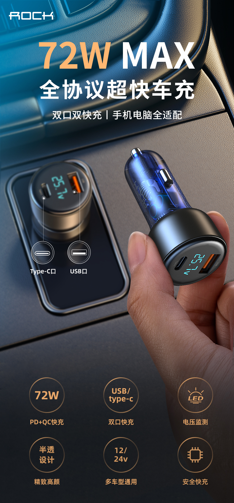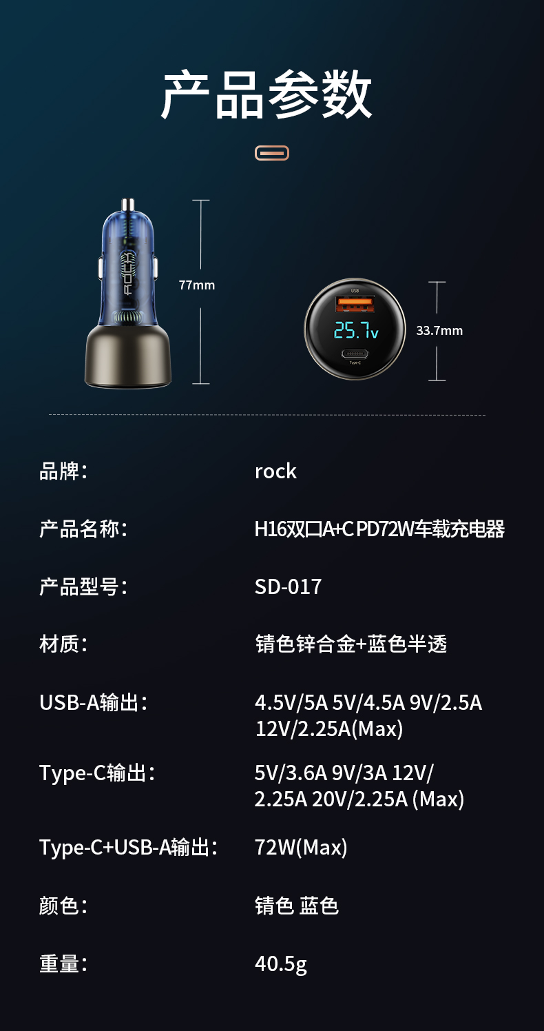 ROCK H16 A+C双口 PD72W 数显车载充电器 SD-017 个 锖色+蓝色