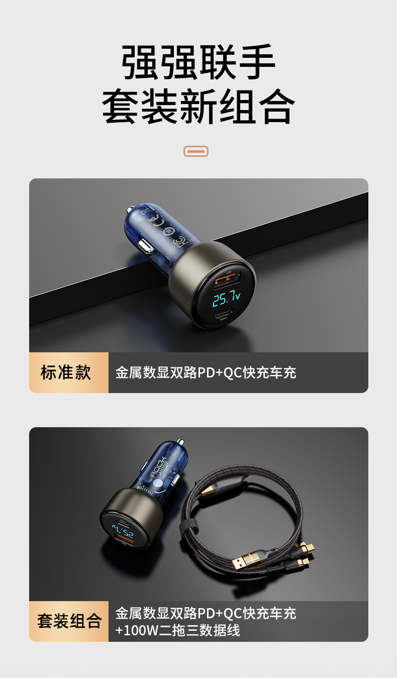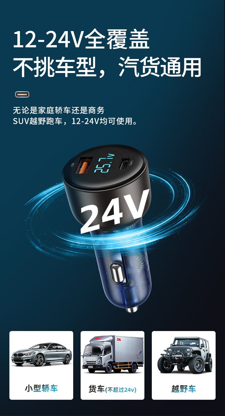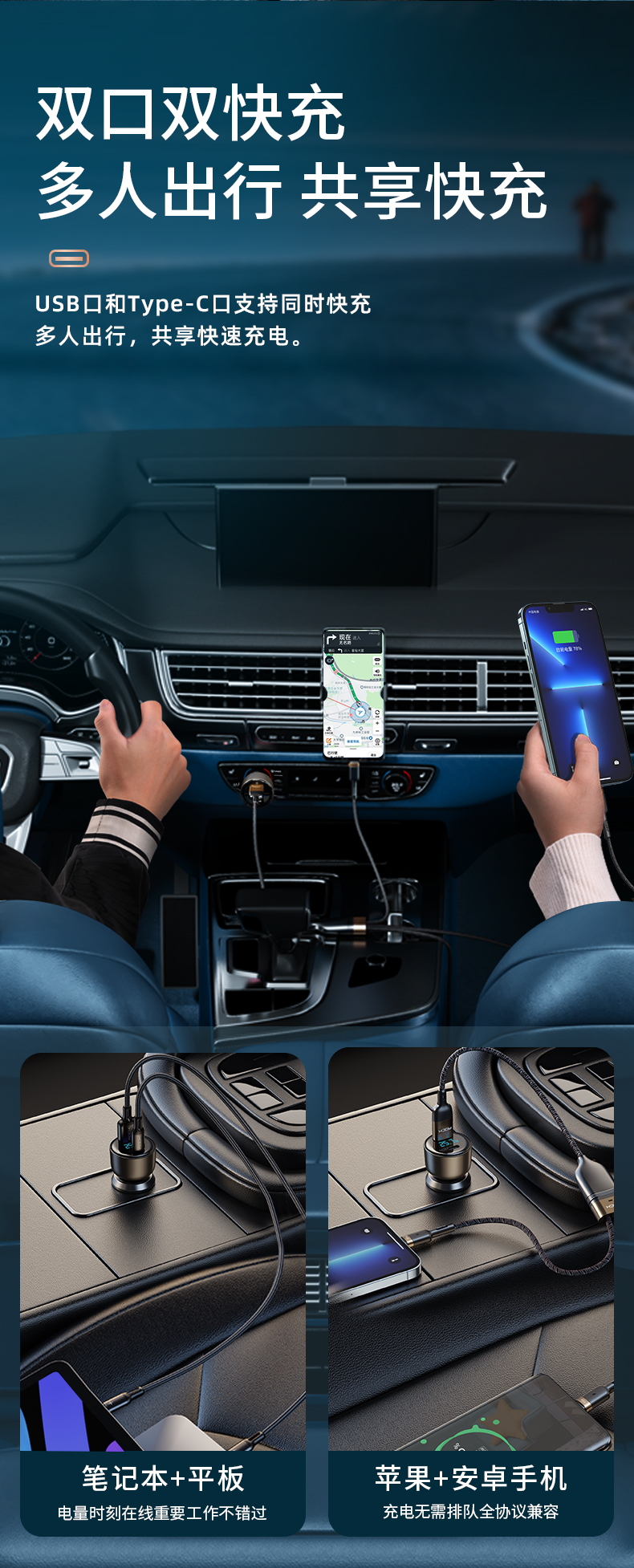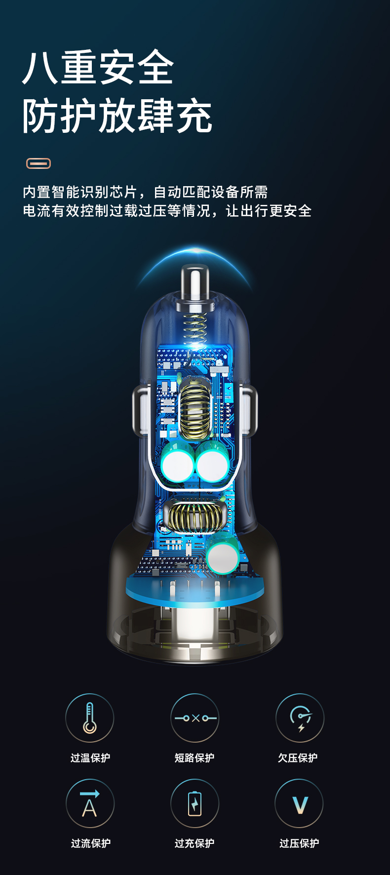 ROCK H16 A+C双口 PD72W 数显车载充电器 SD-017 个 锖色+蓝色