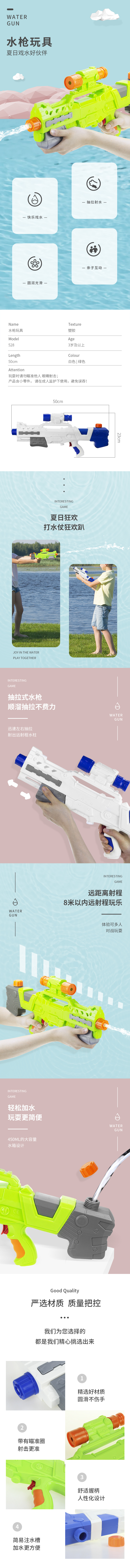 婴侍卫 大号抽拉式水枪戏水玩具 528(单位:只) 绿/白 颜色随机 颜色随机