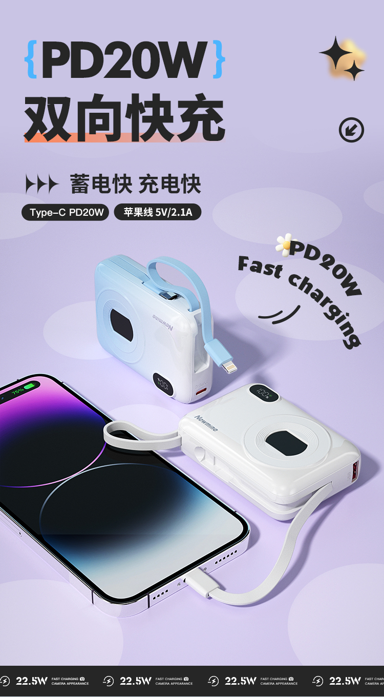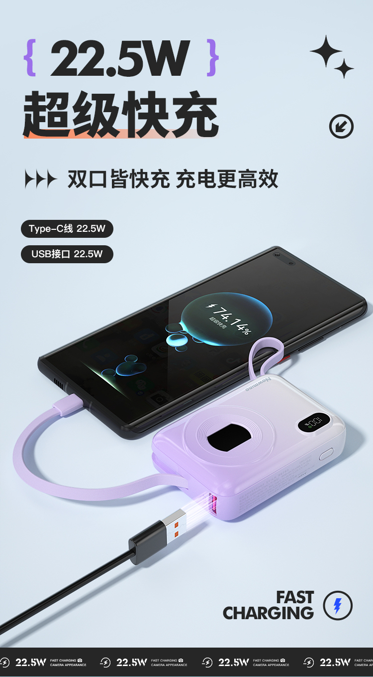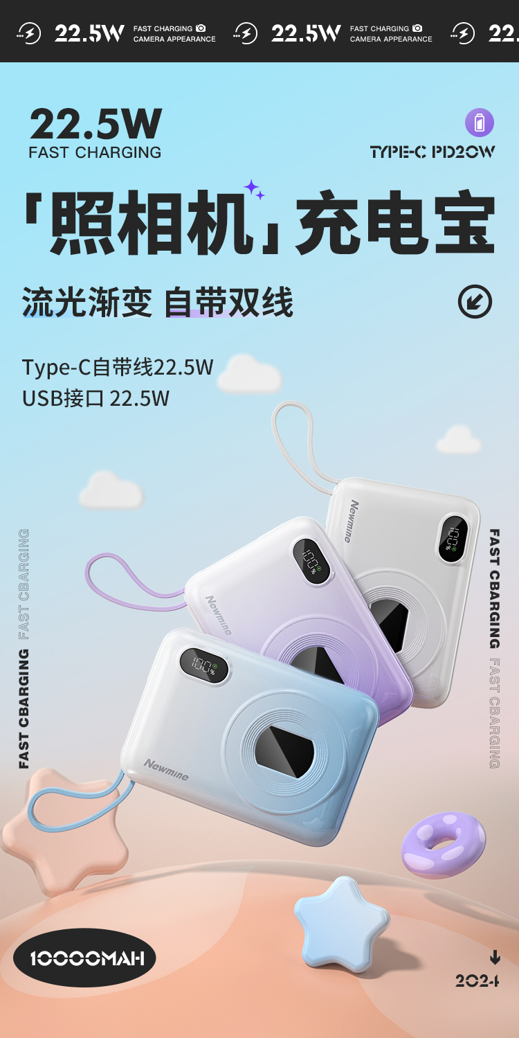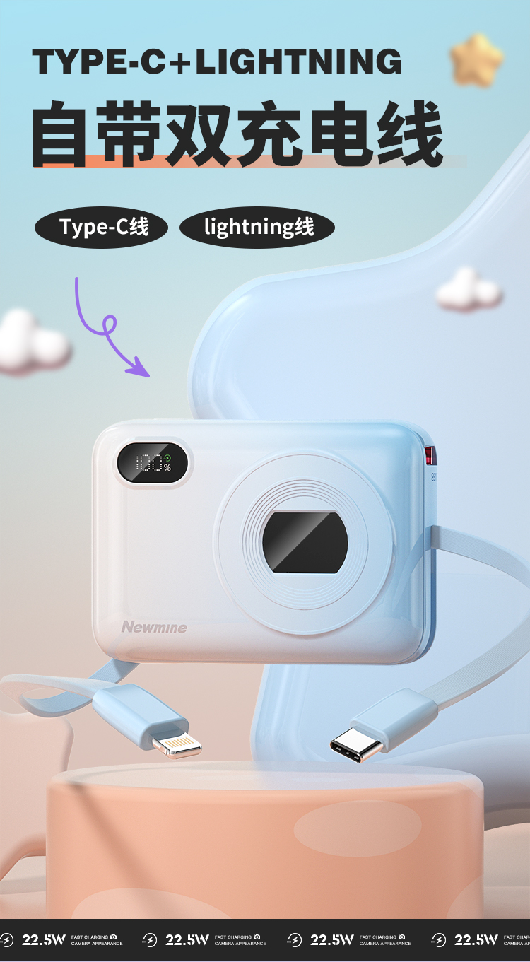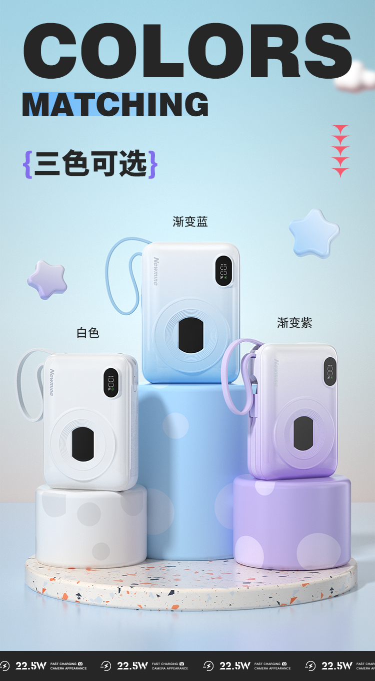 纽曼自带线22.5W超级快充移动电源10000毫安充电宝四输出相机外观AL38 单位:个 渐变蓝