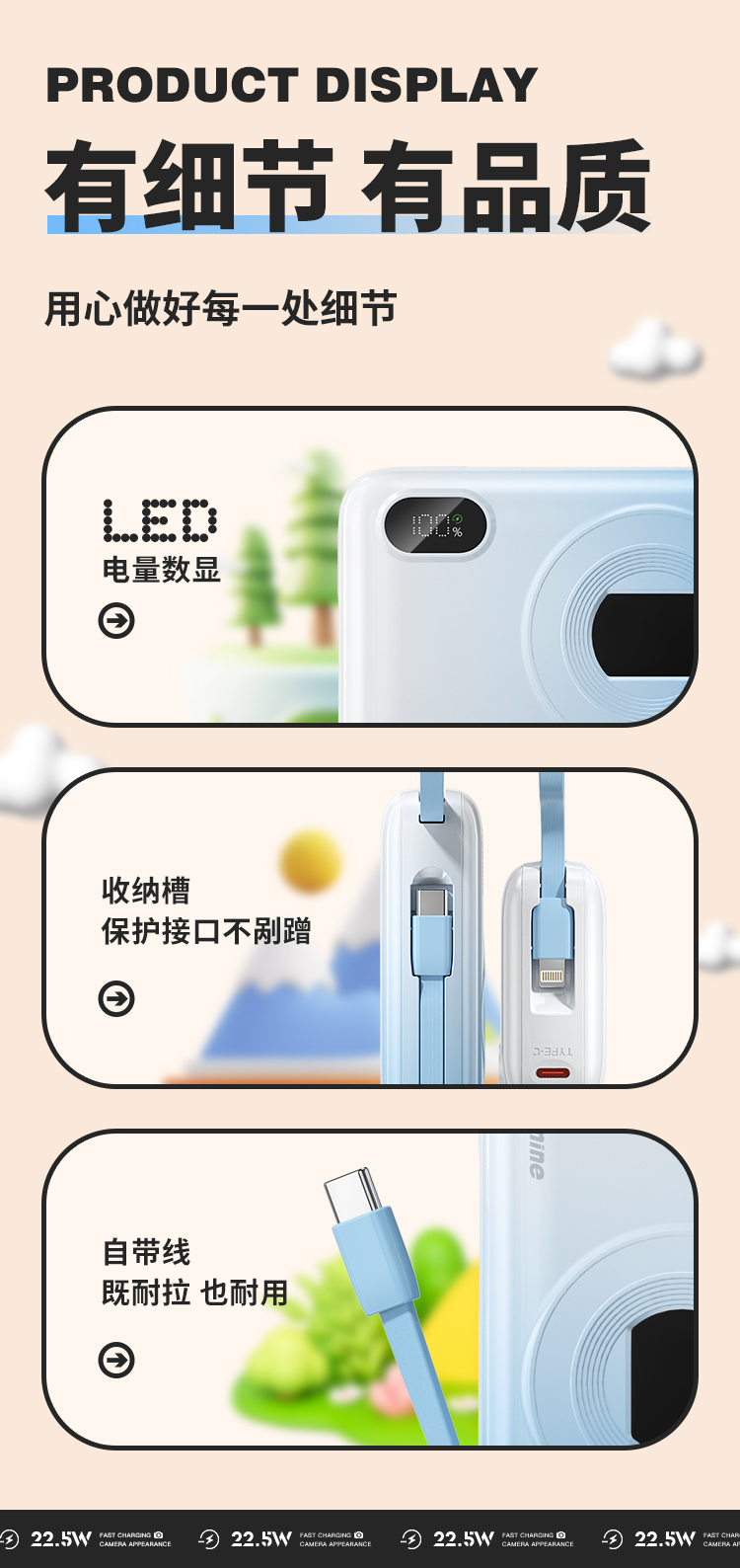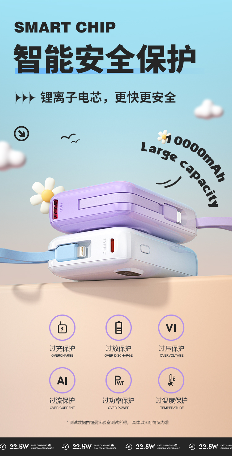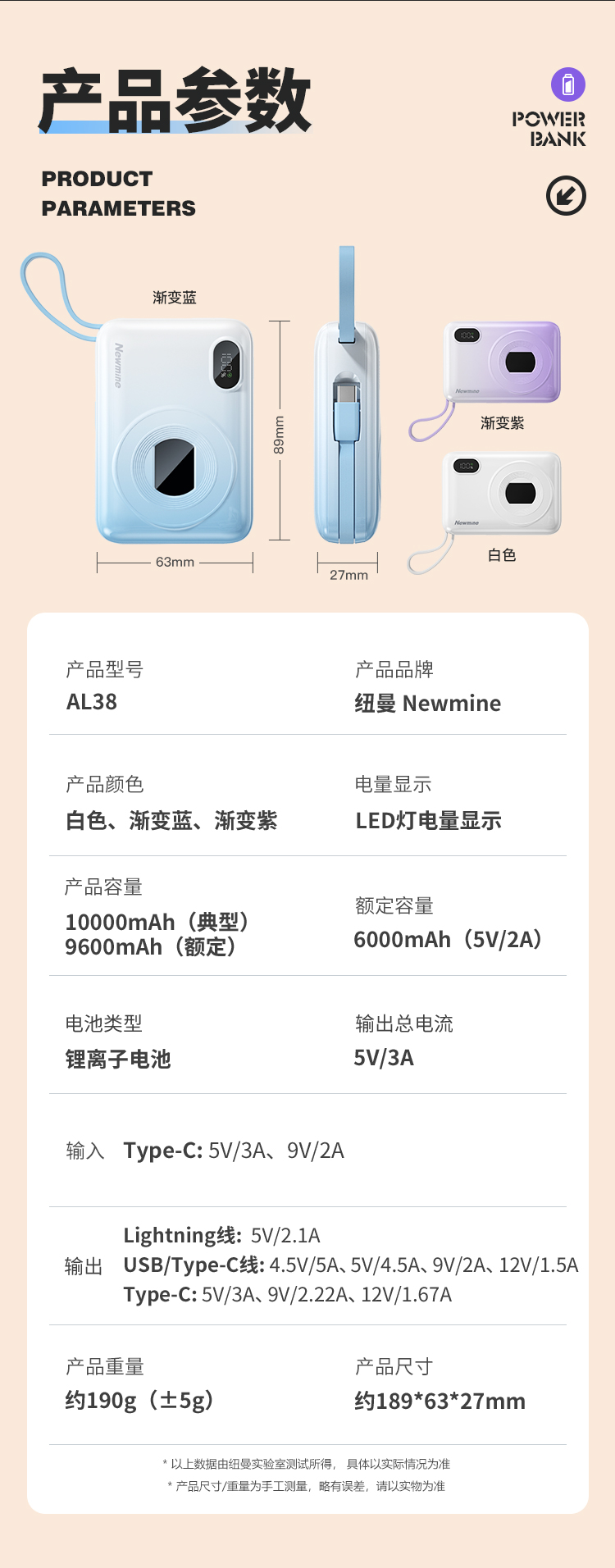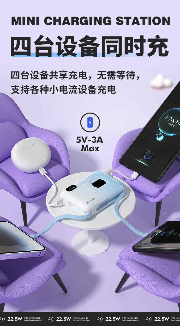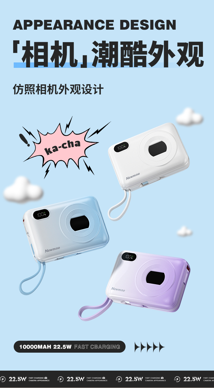 纽曼自带线22.5W超级快充移动电源10000毫安充电宝四输出相机外观AL38 单位:个 渐变蓝
