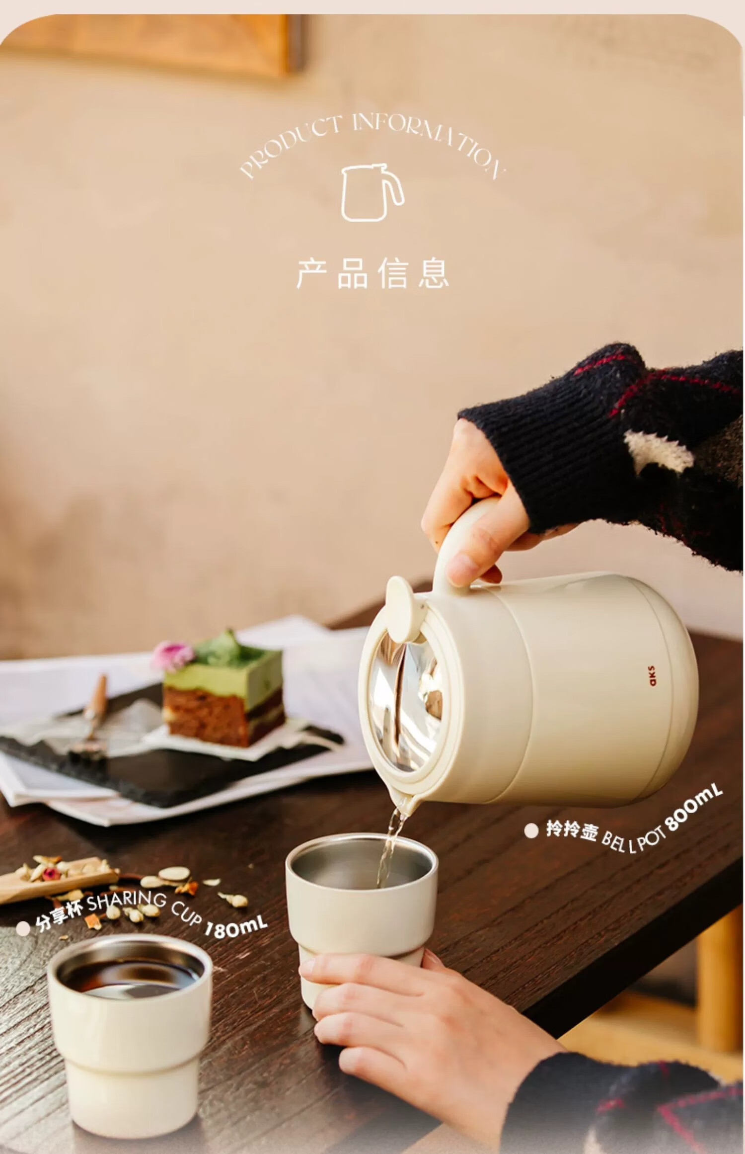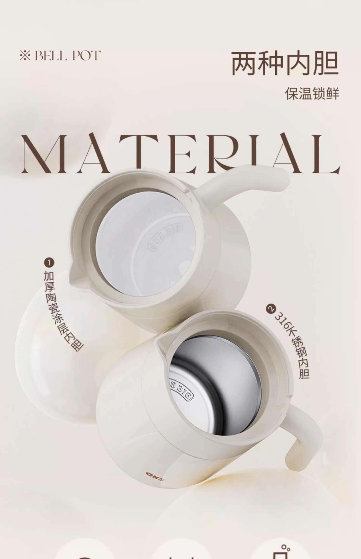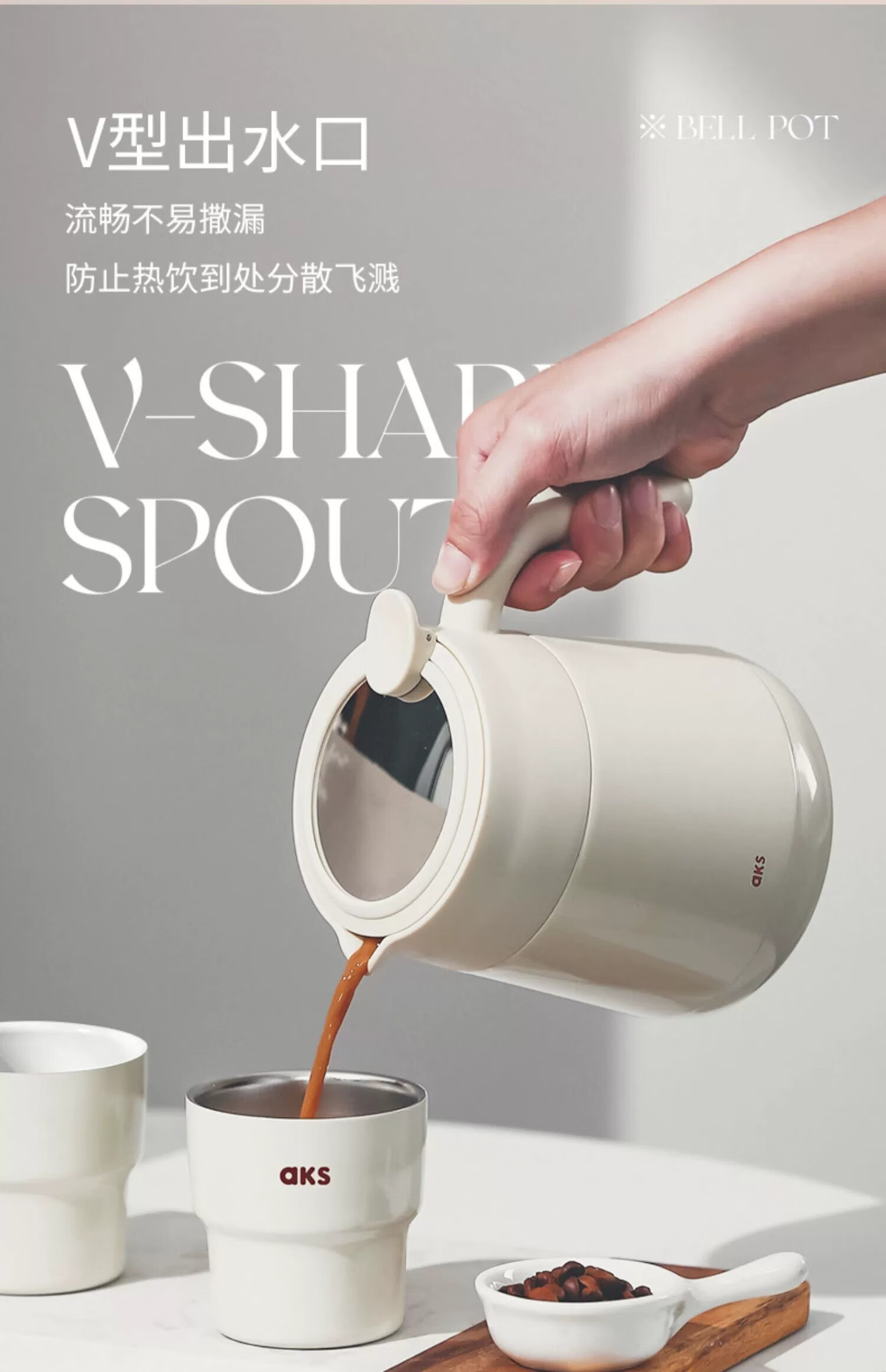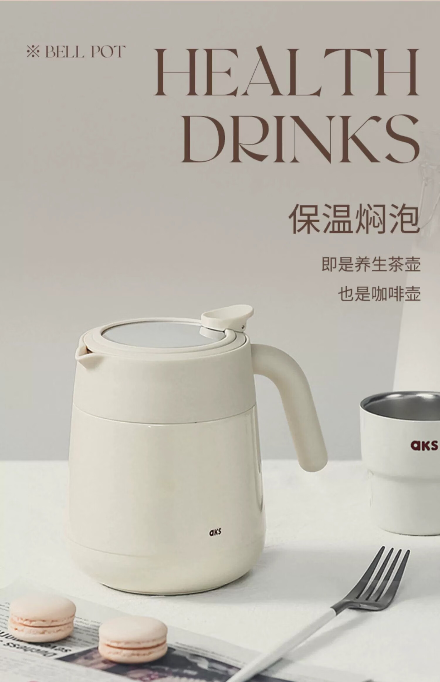 AKS便携焖茶壶暖水壶陶瓷内胆咖啡壶 800mL 保温壶(陶瓷涂层内胆)个 白色