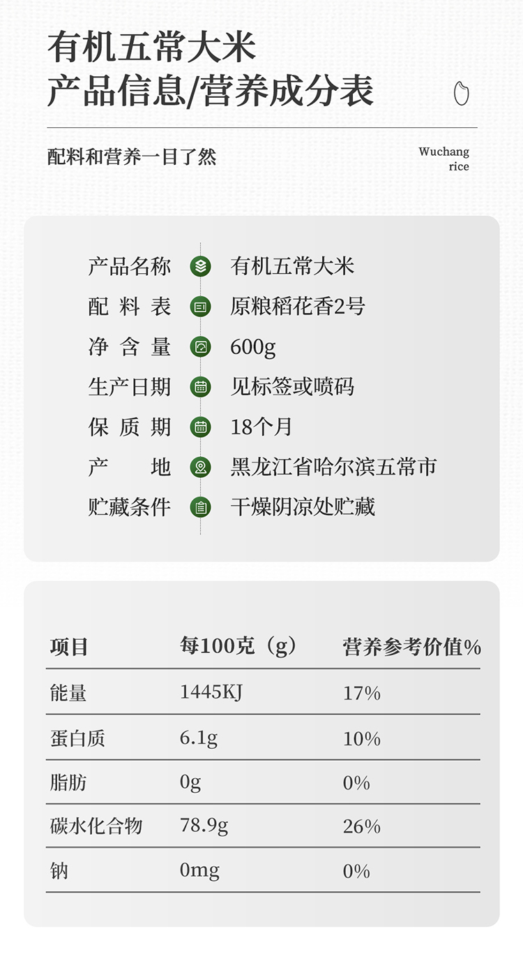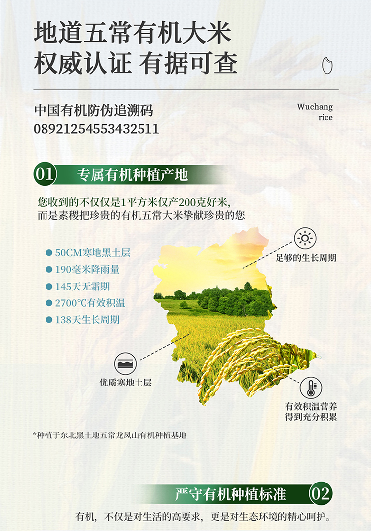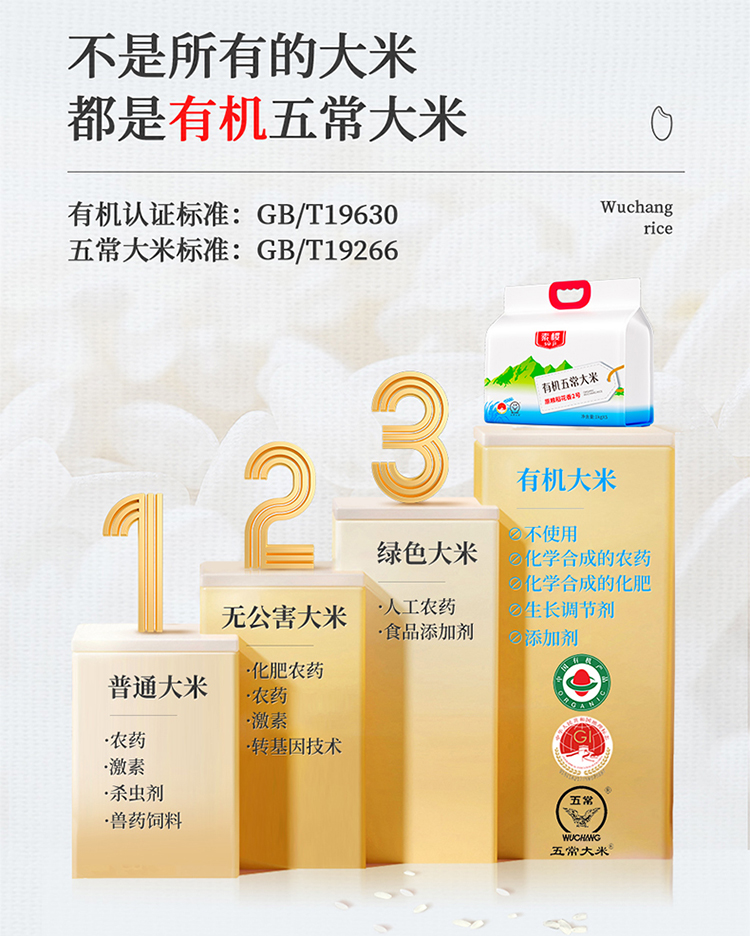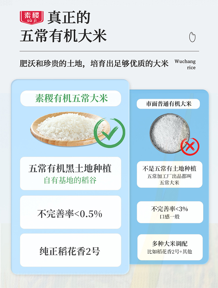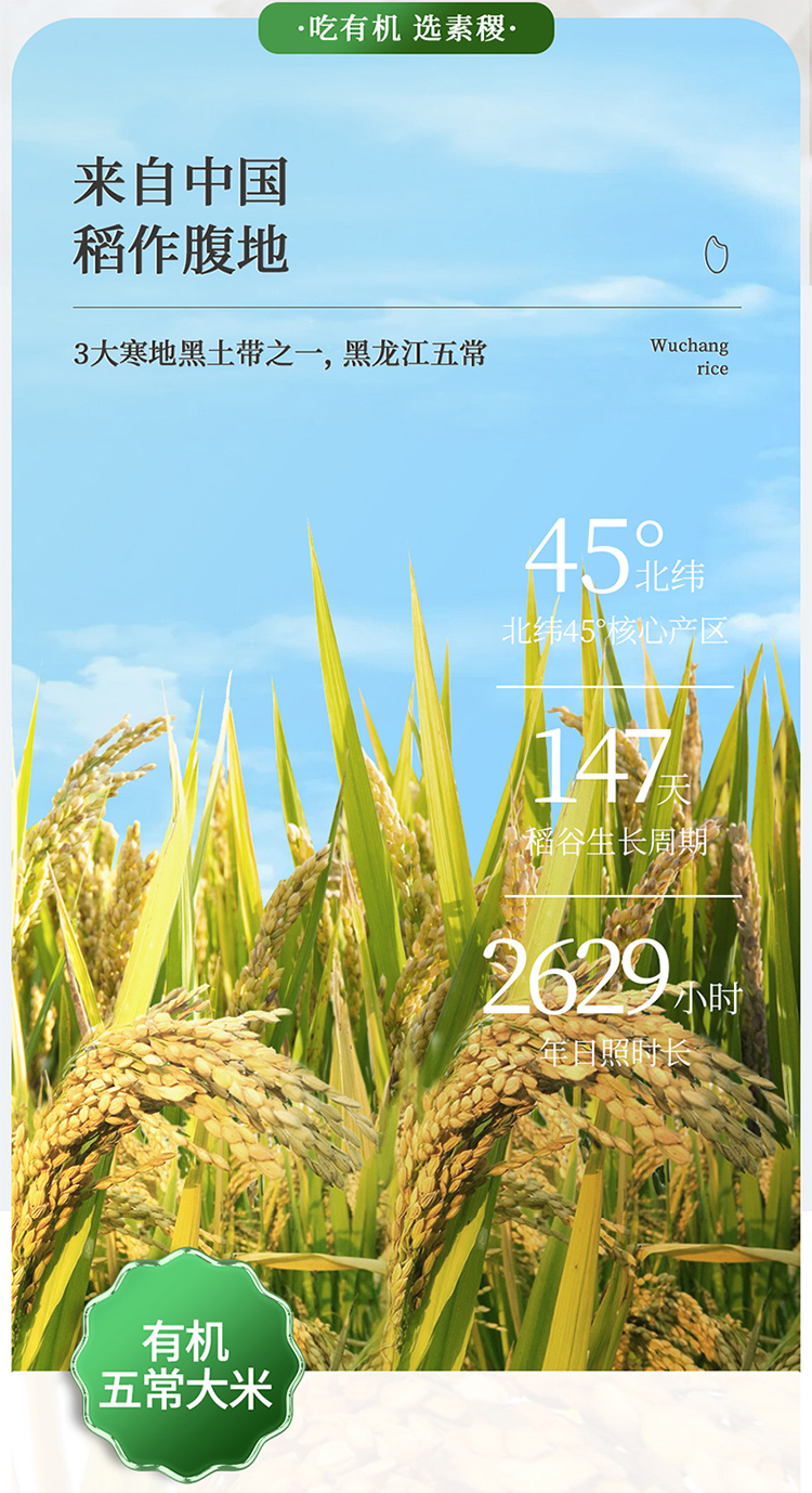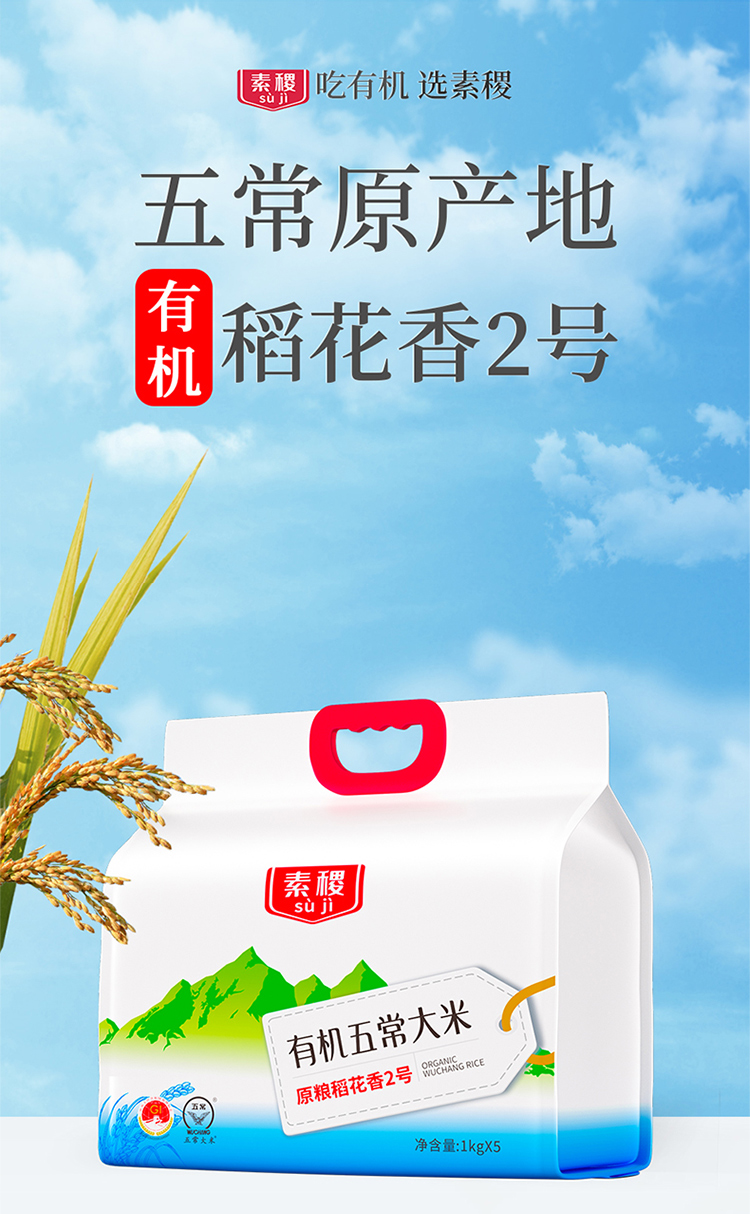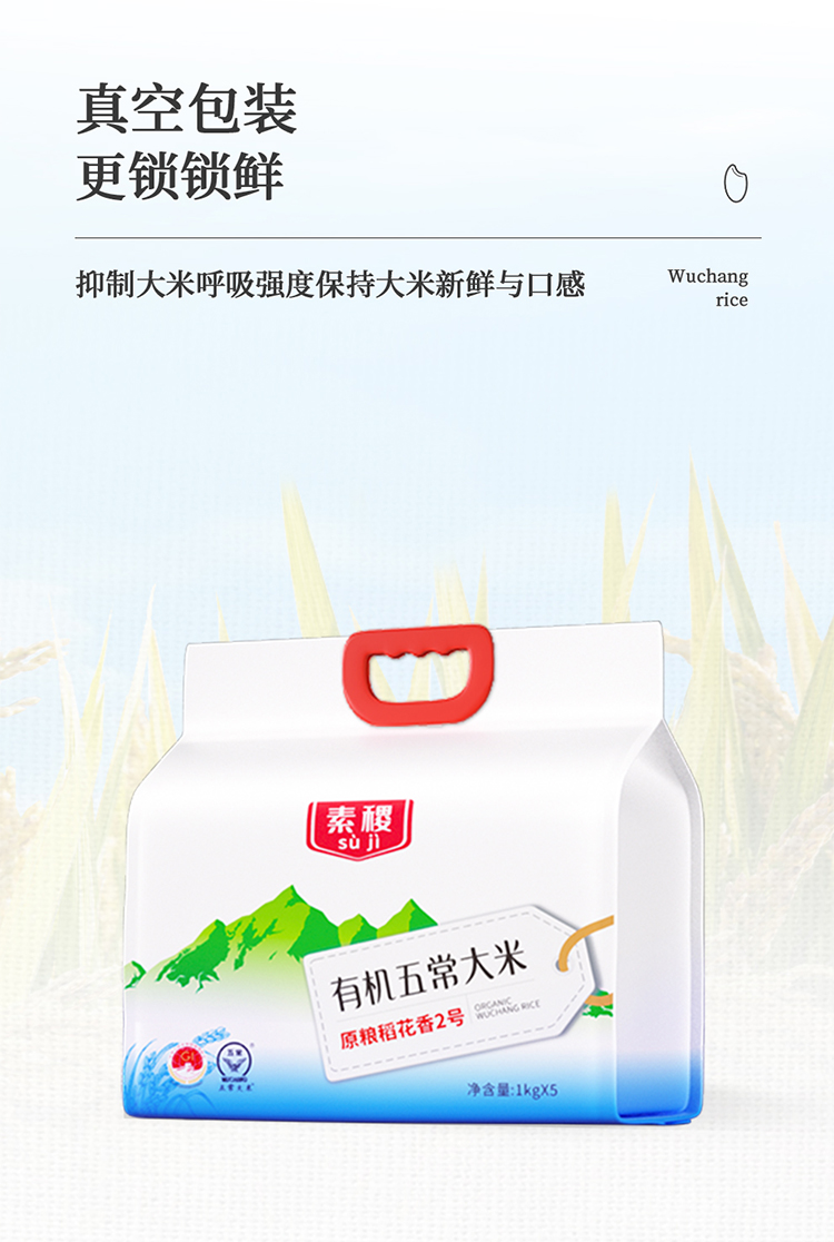 素稷(SUJI)有机五常稻花香2号东北大米粳米五常产地直供 有机五常大米5kg 单位:袋 松石绿