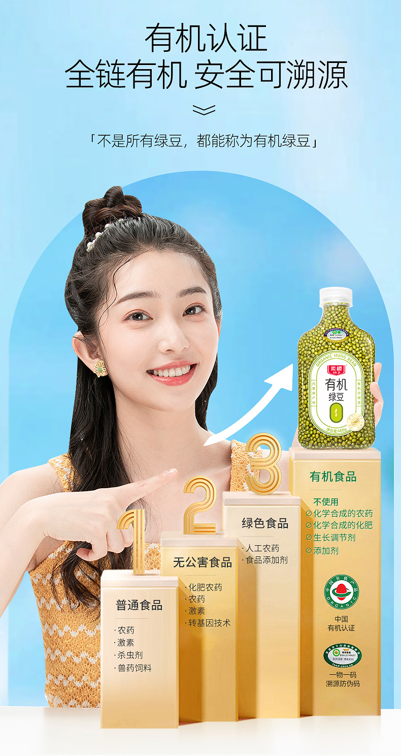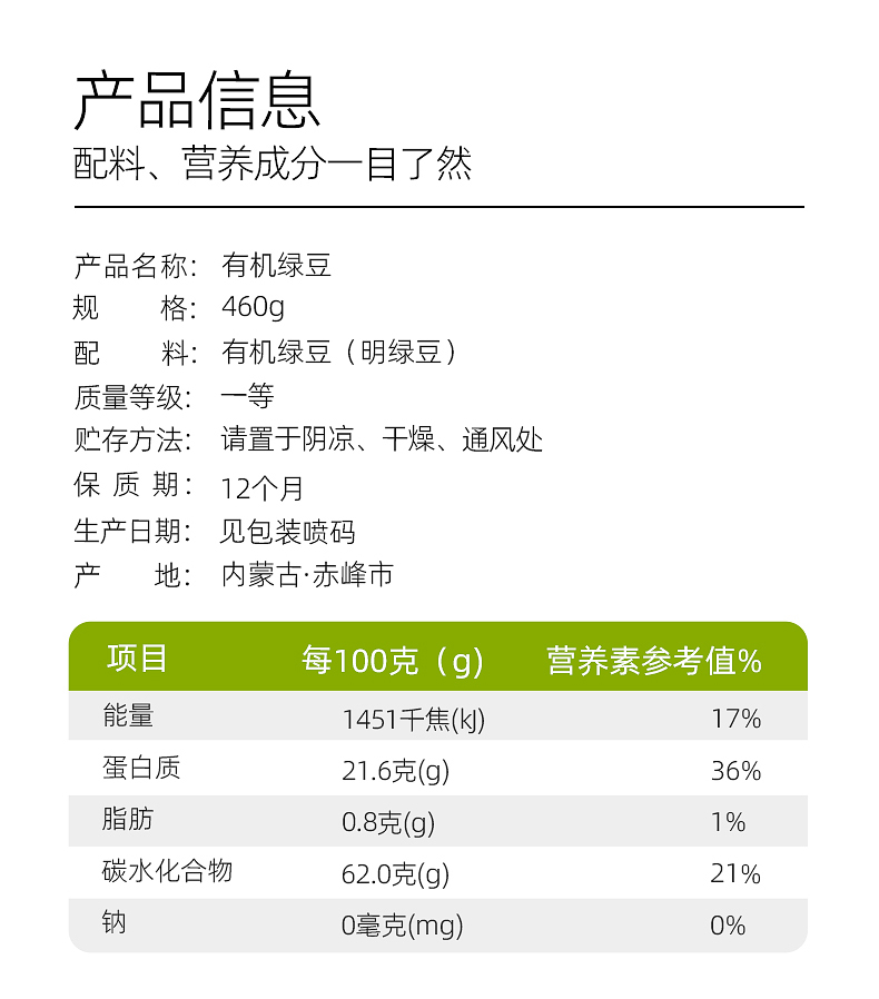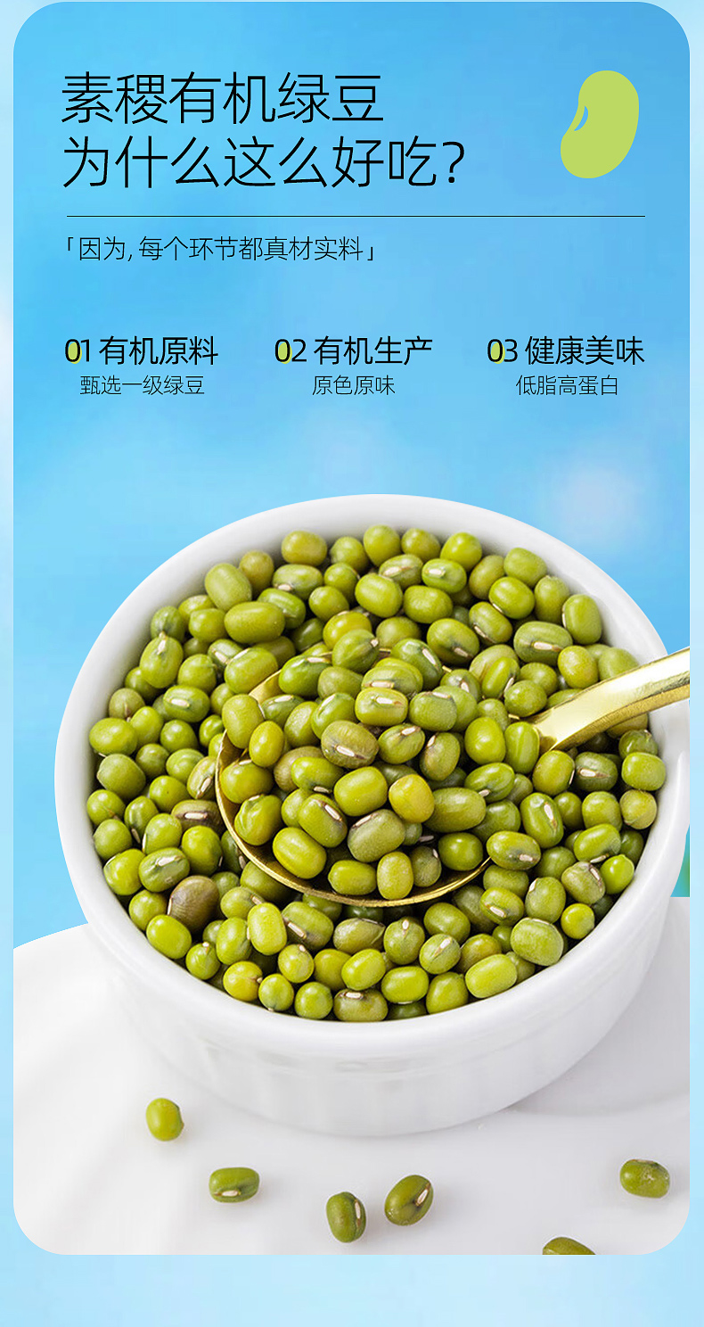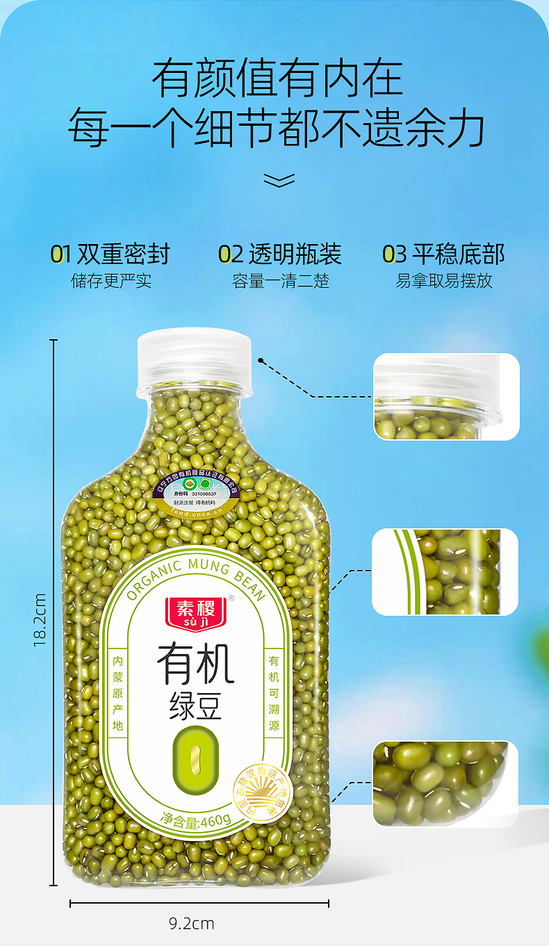 素稷(SUJI)有机绿豆正宗东北内蒙特产绿豆沙绿豆汤解暑原材料罐装 有机绿豆460g 单位:瓶 柠绿色