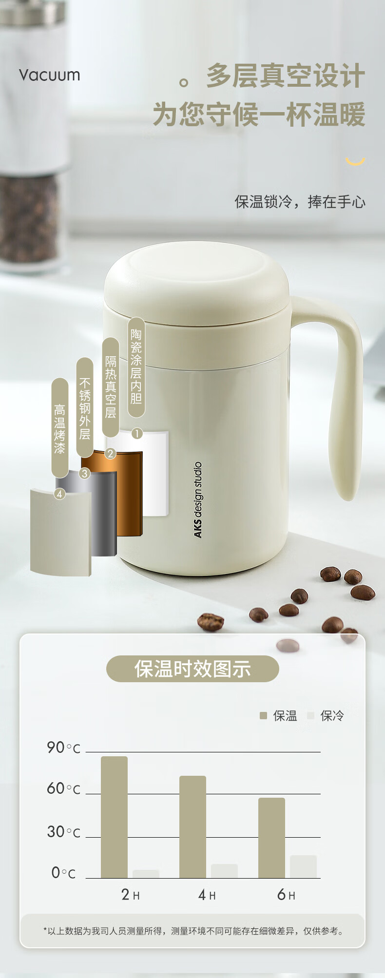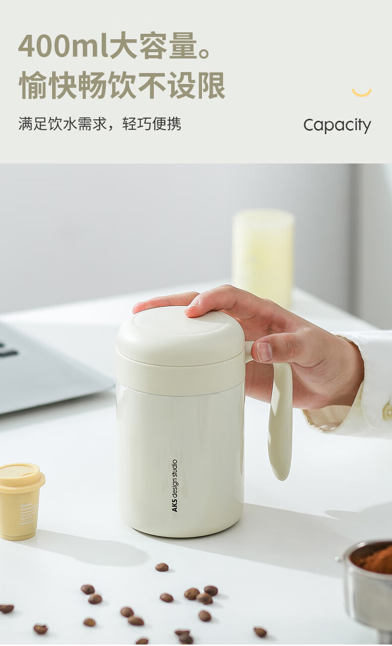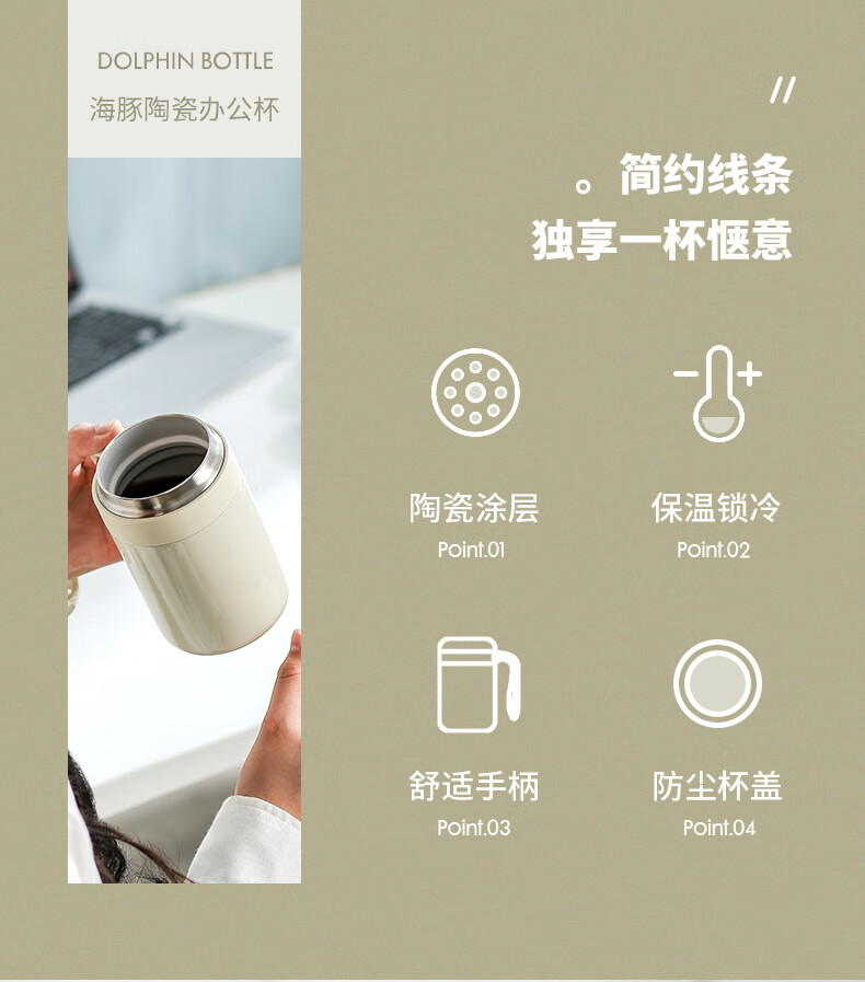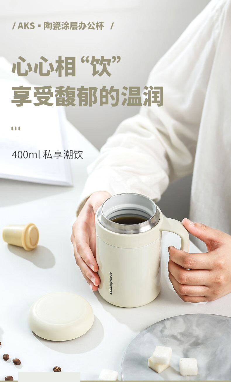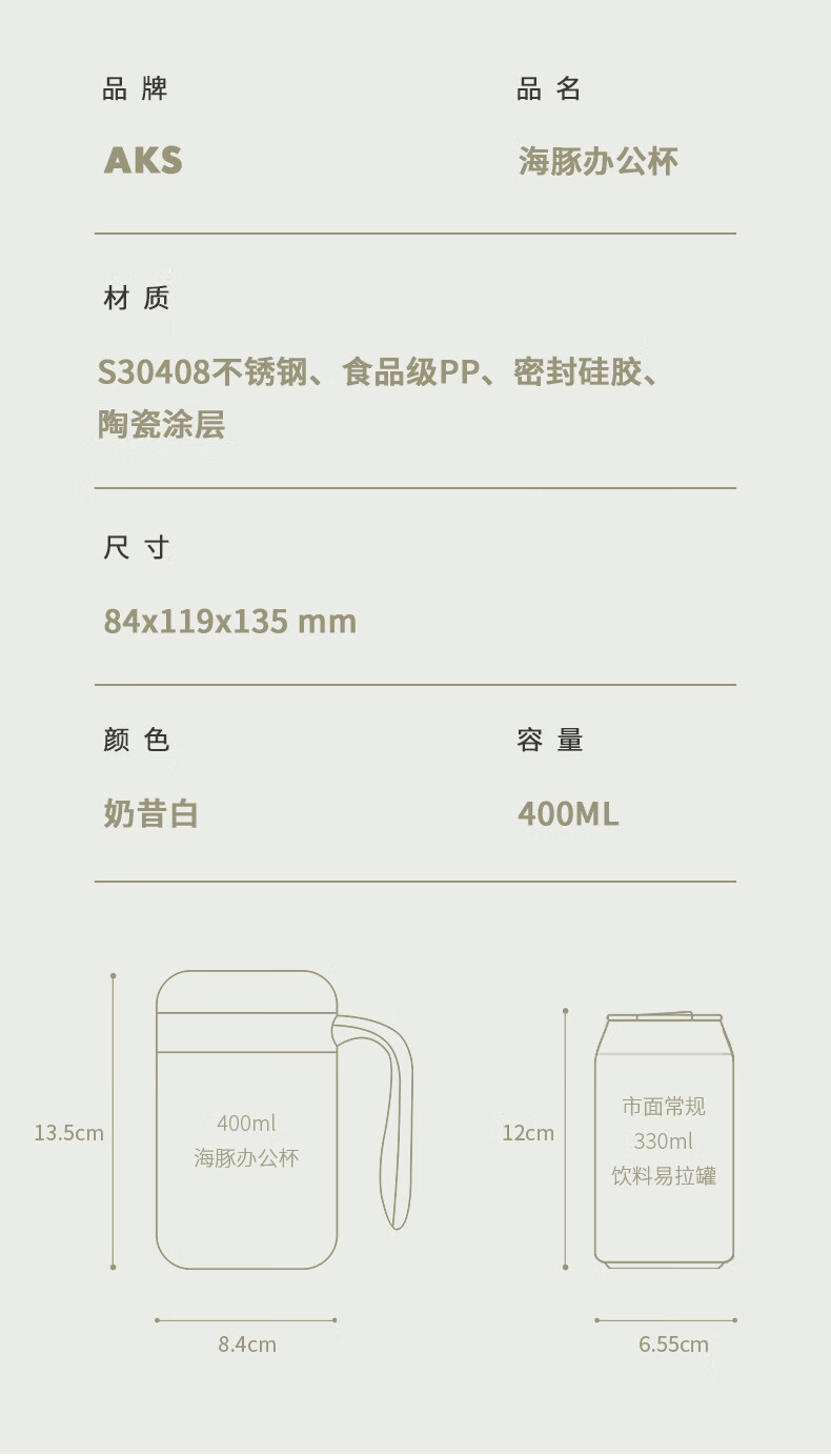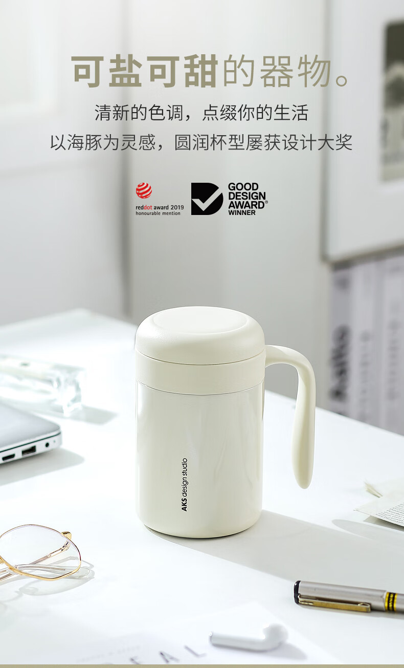 AKS海豚 办公杯 (陶瓷涂层) AKS 624C 400ml /个 奶昔白