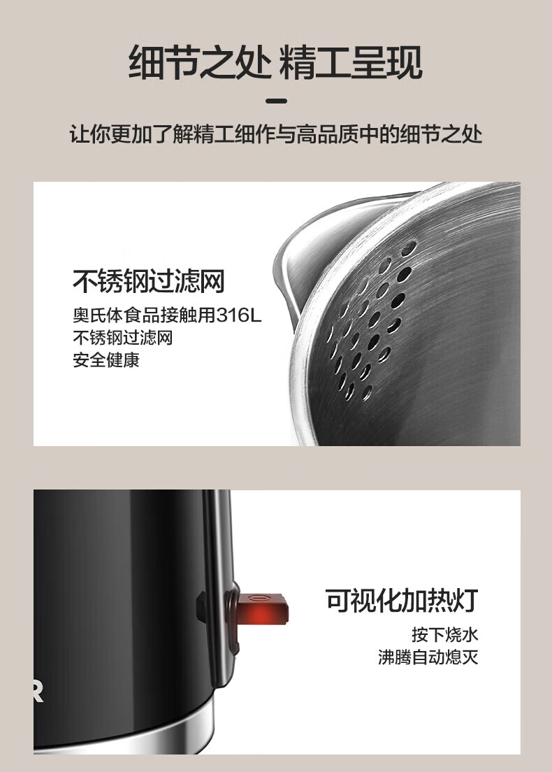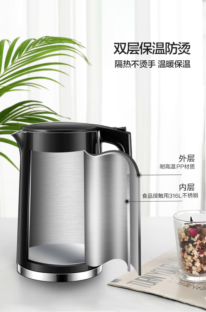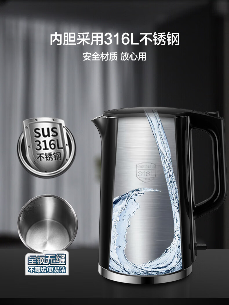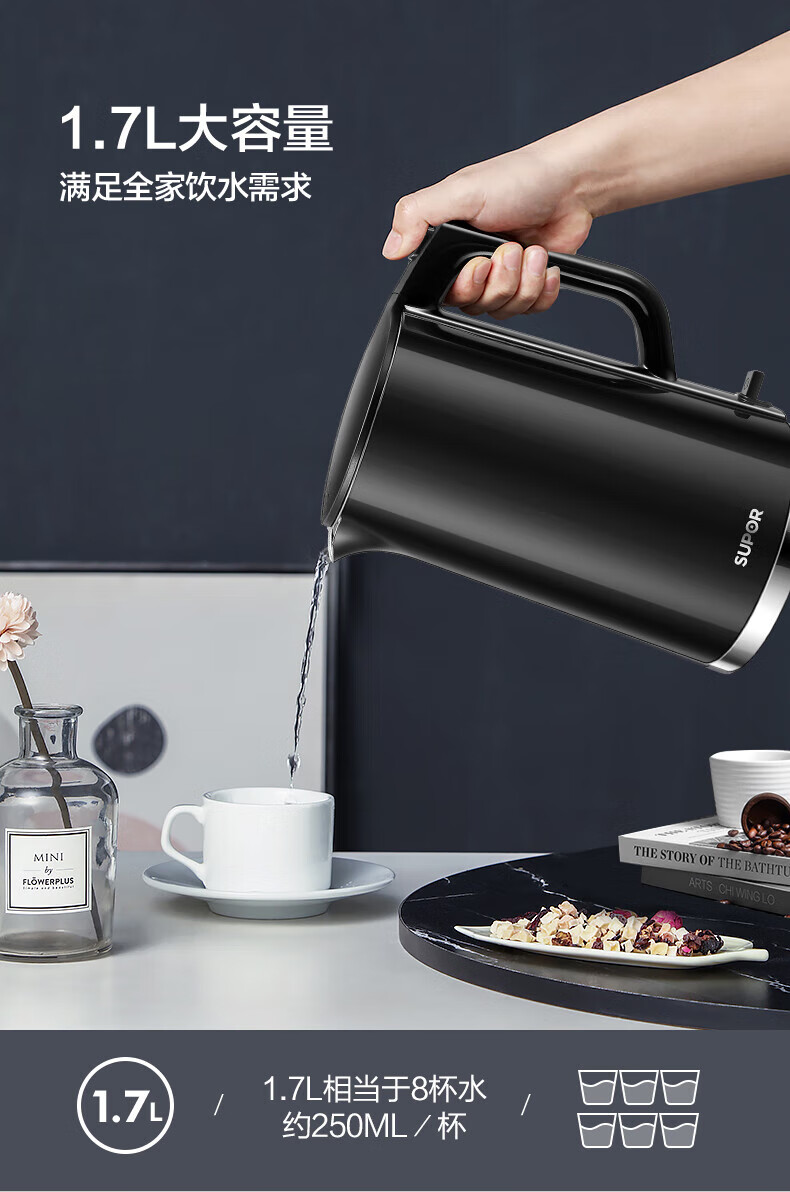 苏泊尔(SUPOR)1.7L电水壶双层保温1500W大功率 SW-17S16L/台 黑色