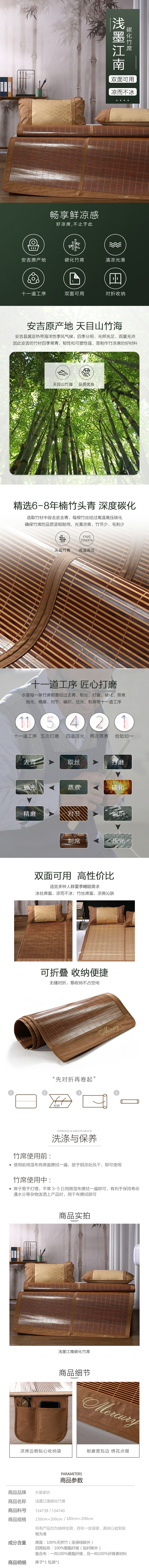 水星家纺 浅墨江南碳化竹席 124739/124740 浅墨江南碳化竹席 1.5米床