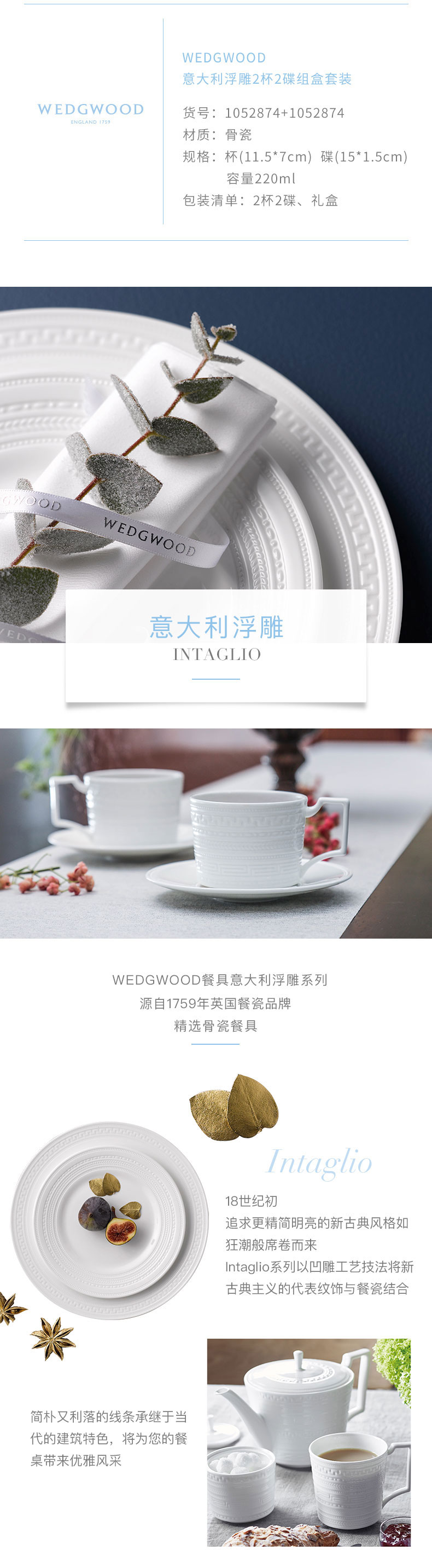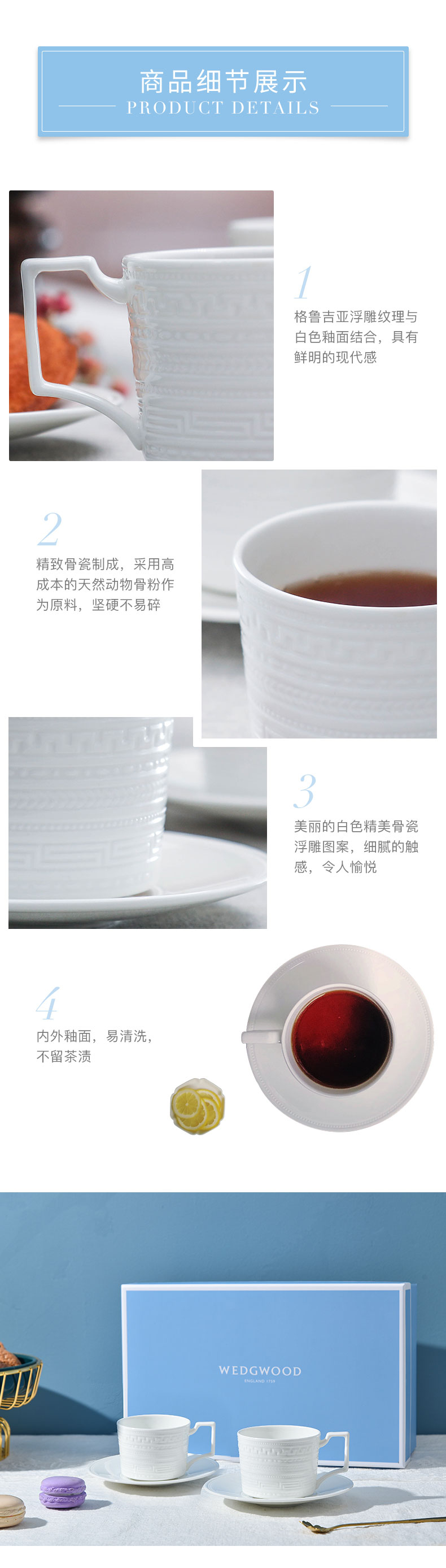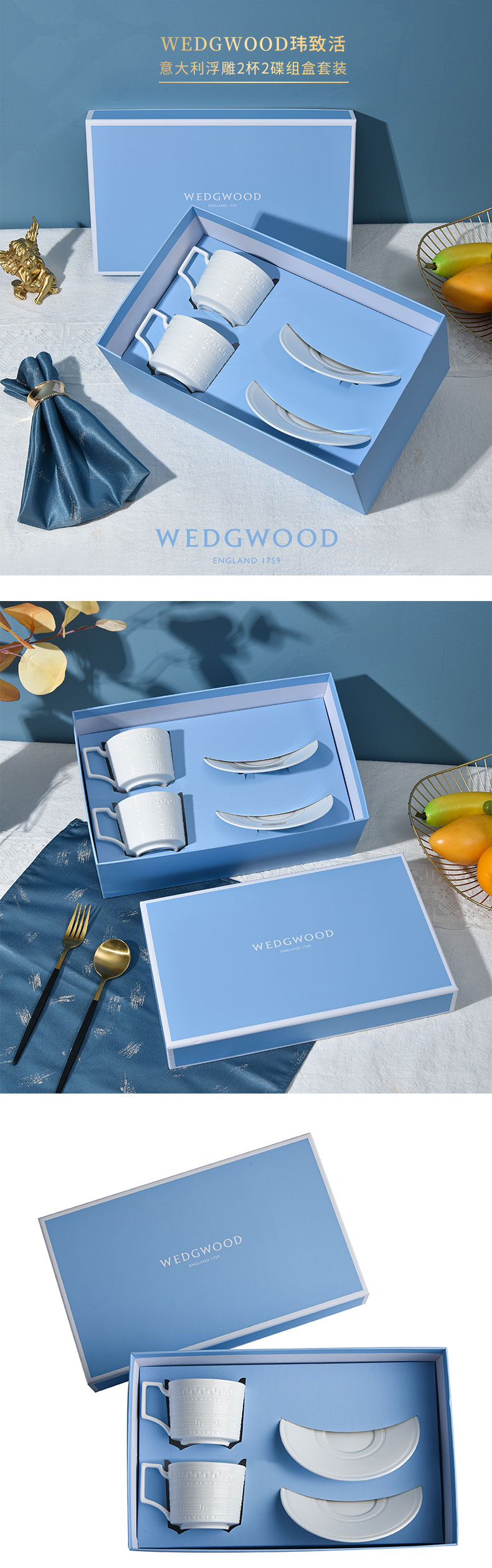 WEDGWOOD威基伍德意大利浮雕2杯2碟组盒套装(单位:套) 本白色