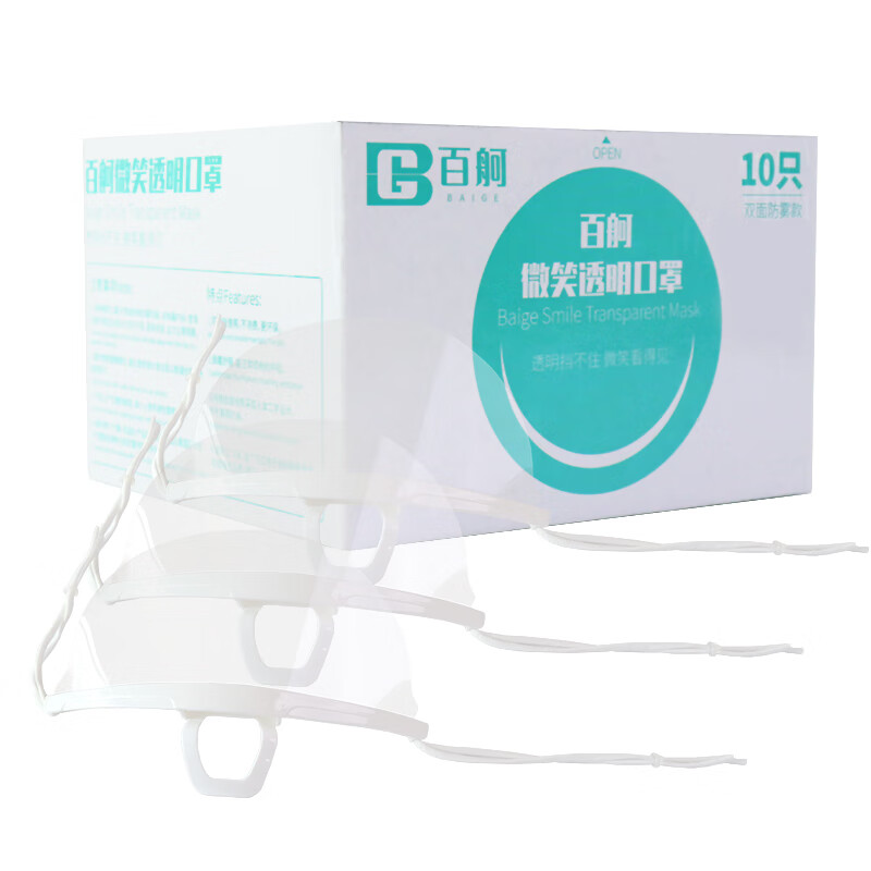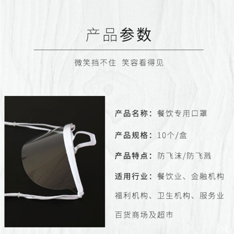 百舸 餐饮透明口罩 厨师酒店食堂专用 防雾防飞沫10只装 (100只起订) 单位:盒 白色