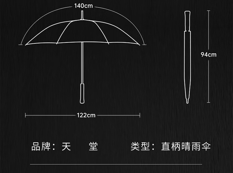 天堂【17509E晴雅】臻品直柄商务大伞实木手柄-/把 黛蓝