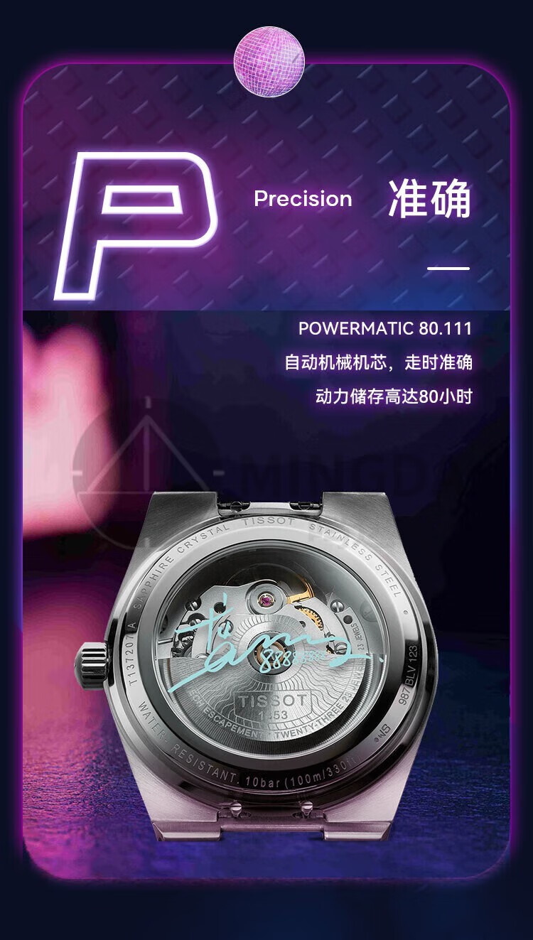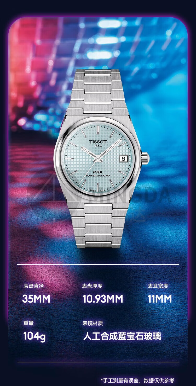 TISSOT天梭 PRX超级玩家系列机械手表T137.207.11.351.00(单位1块) 天蓝色