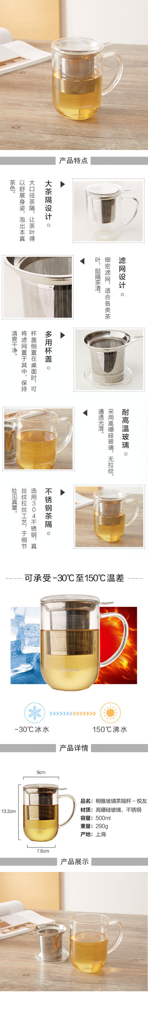 多样屋明雅不锈钢茶隔杯 -悦友500ml(单位:只) 无色