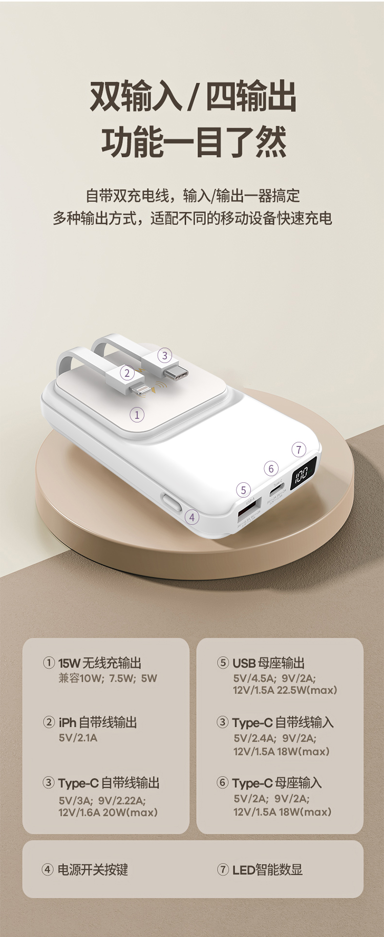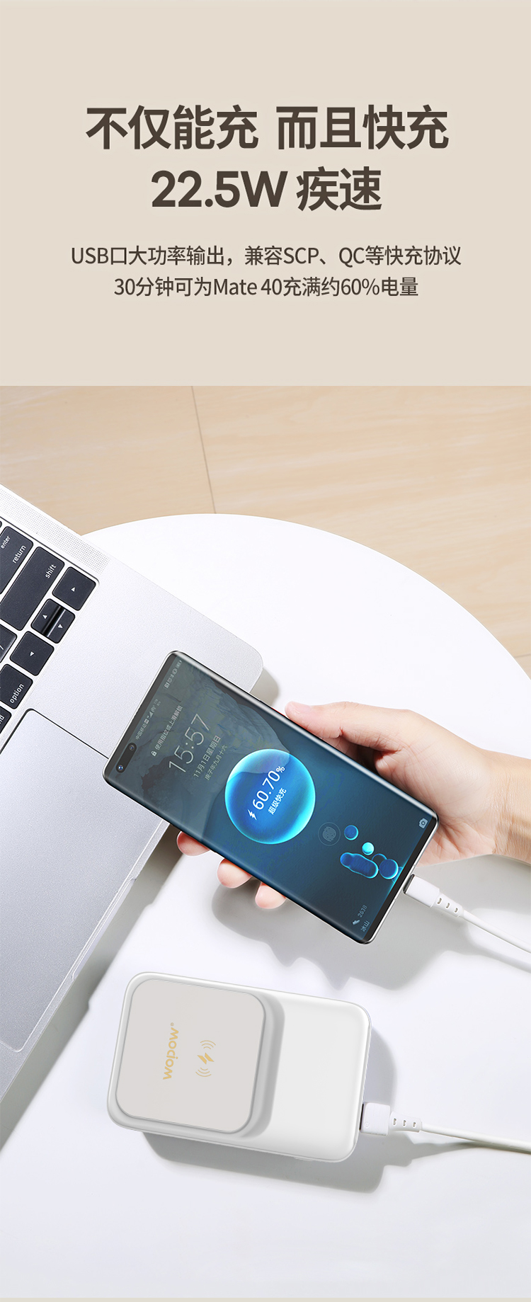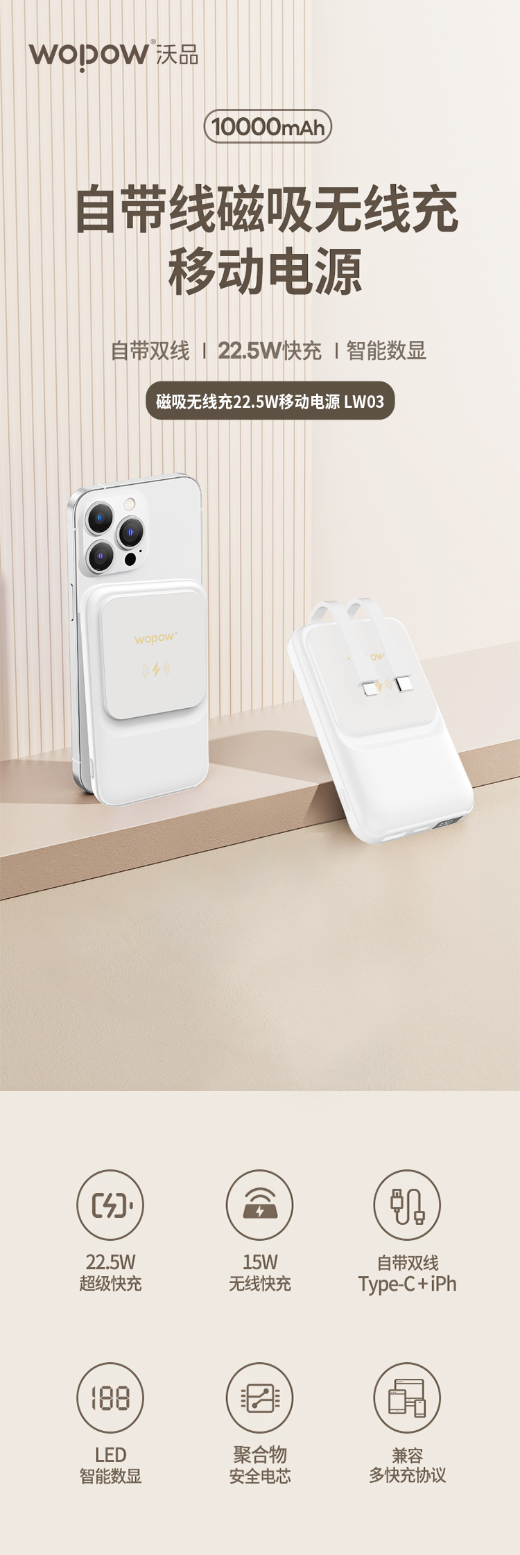 沃品 磁吸无线快充 移动电源 LW03 白色 白色