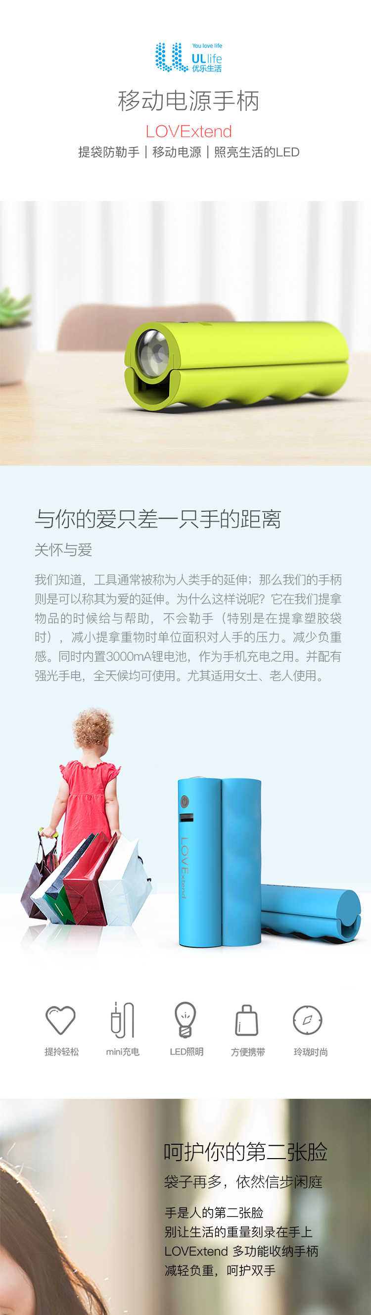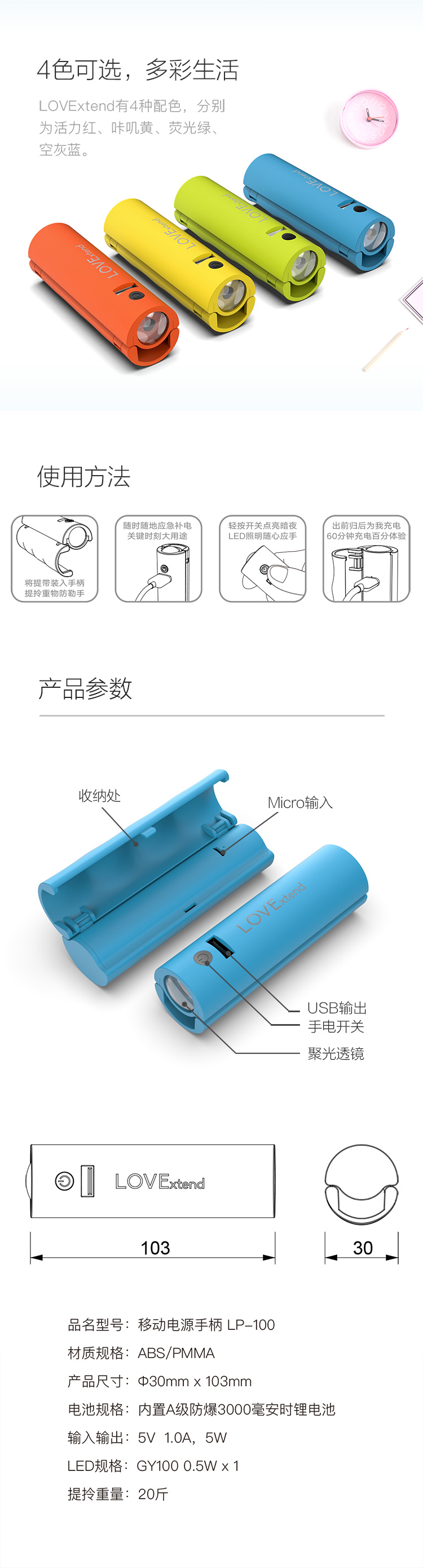 优乐生活移动电源手柄20毫安时LP-100 橙色