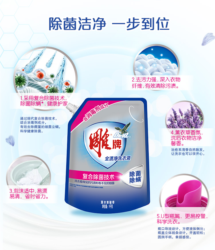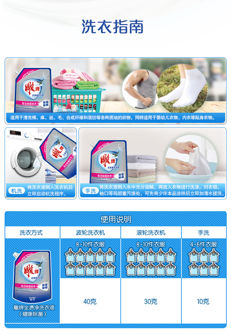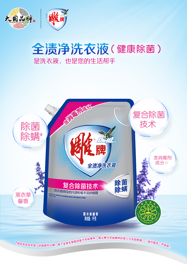 雕牌全渍净洗衣液(健康除菌)2袋装(新疆、青海、西藏不发)1kg*2 图片色 图片色