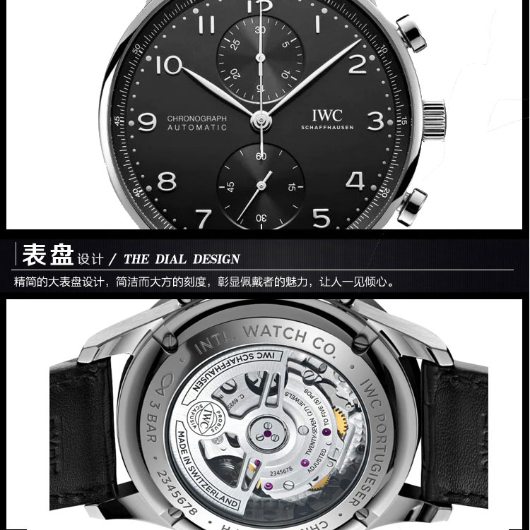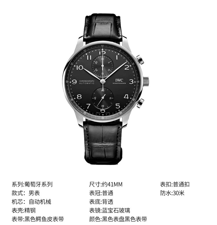 IWC万国 葡萄牙系列计时机械手表男士腕表(41mm) IW371609 黑色