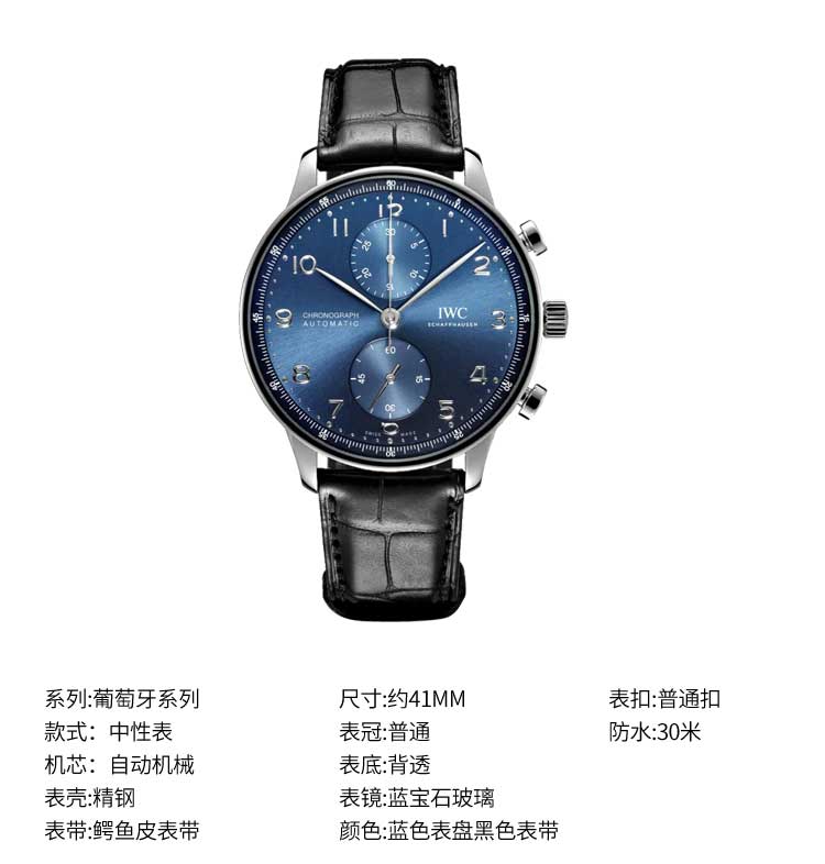 IWC万国 葡萄牙系列自动机械手表计时男女腕表(41mm) IW371606(单位:只) 蓝色