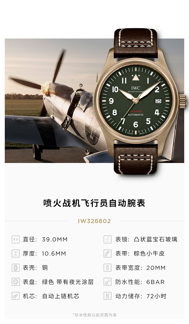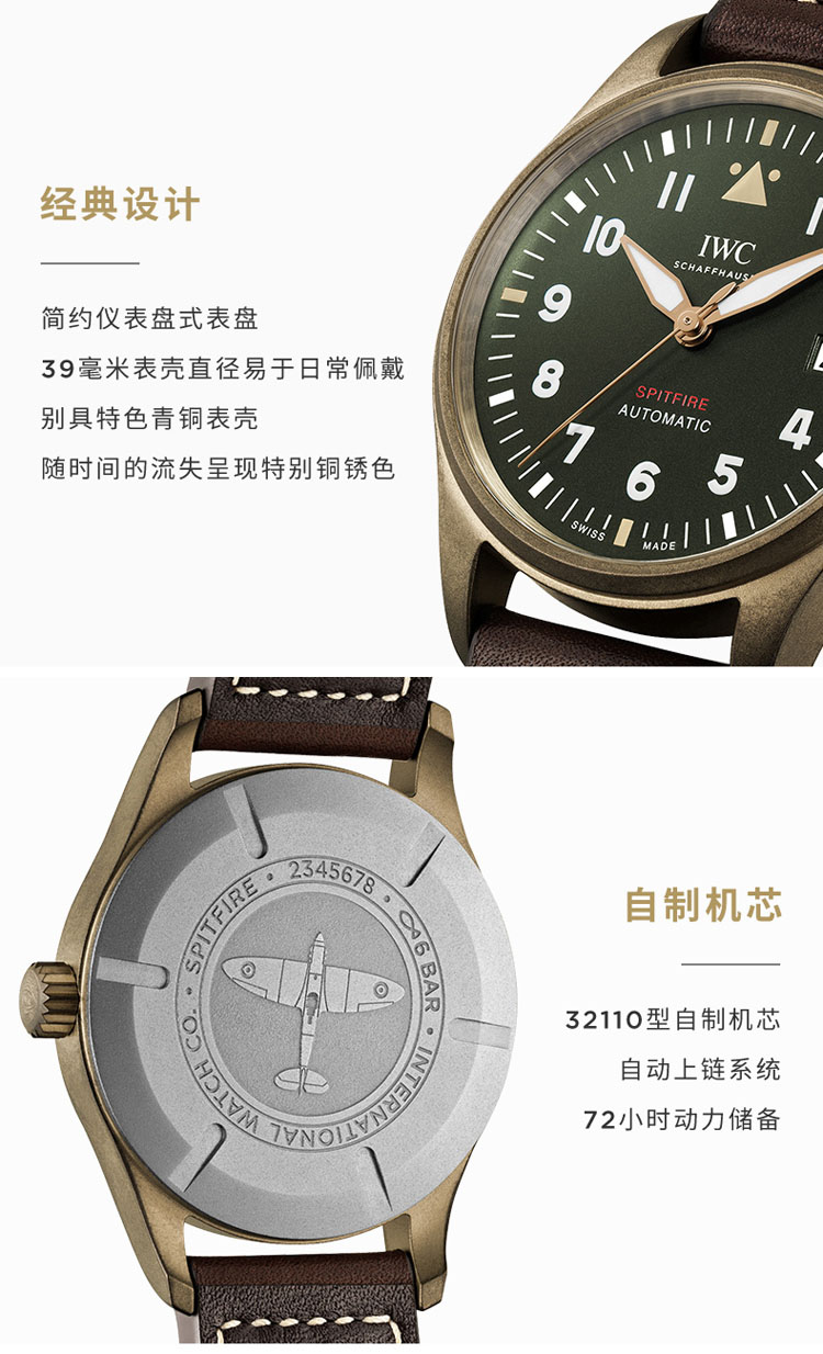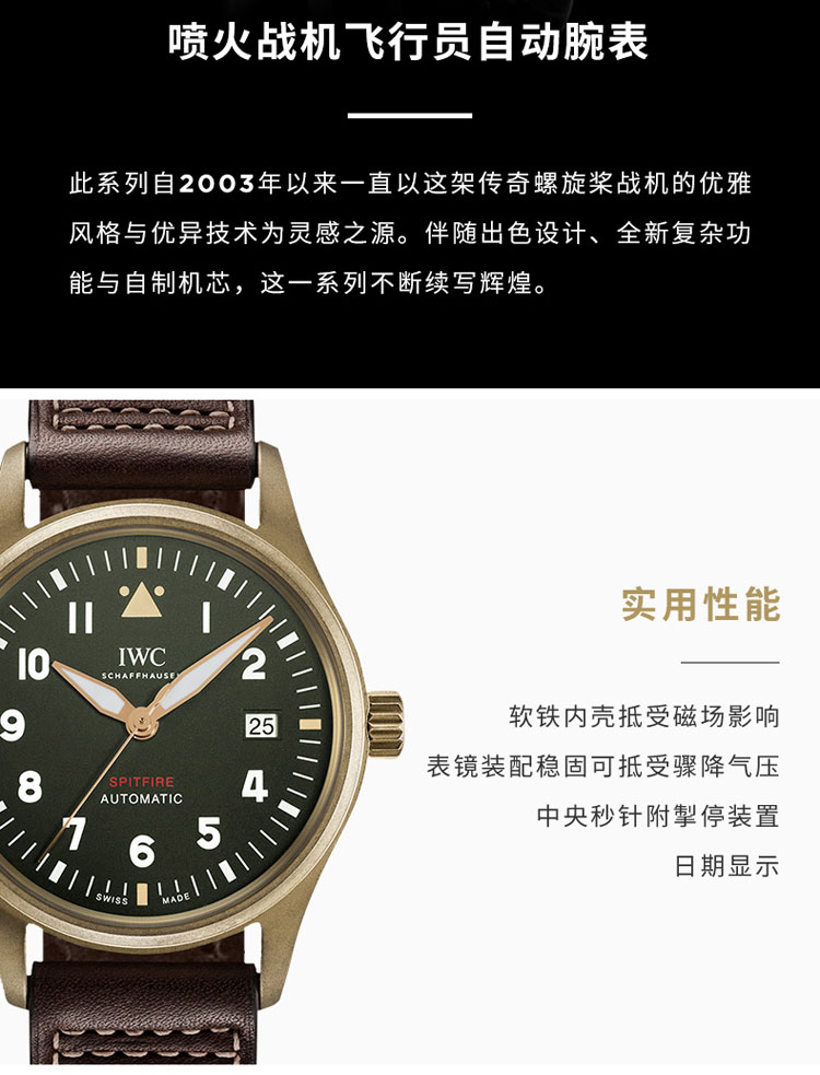 IWC万国 喷火战机飞行员系列自动机械计时手表男腕表 IW326802(单位:只) 绿色