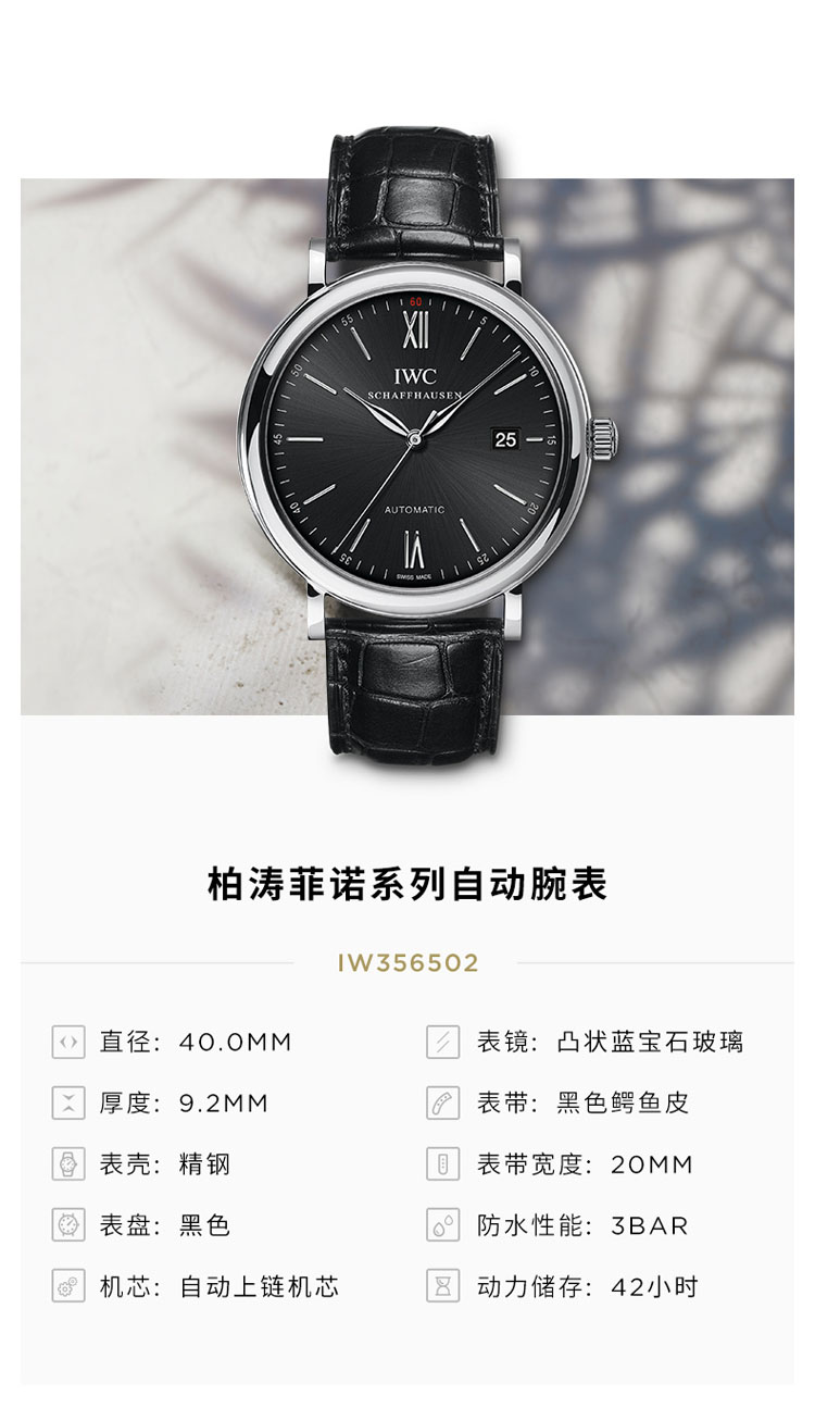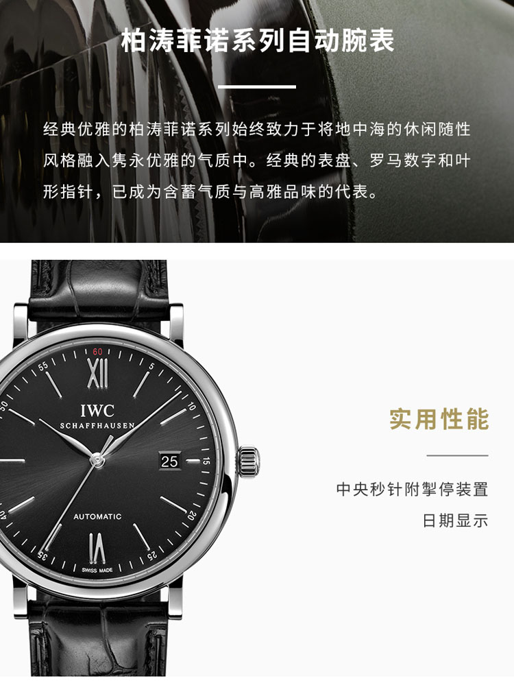 万国IWC瑞士手表 柏涛菲诺系列机械男表IW356502 黑盘 皮带 单位:块 黑色