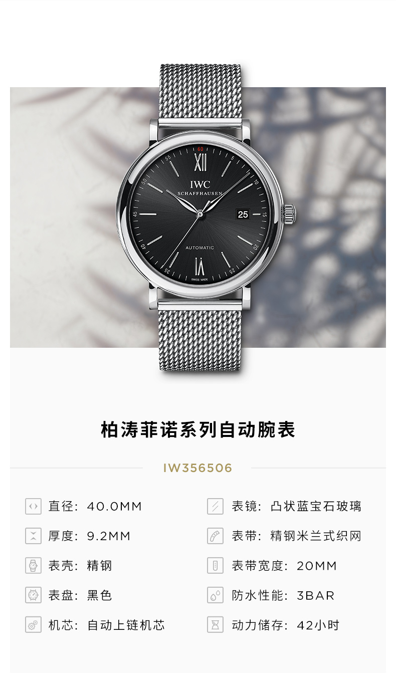 IWC万国 柏涛菲诺系列机械手表男女腕表 IW356506 黑色