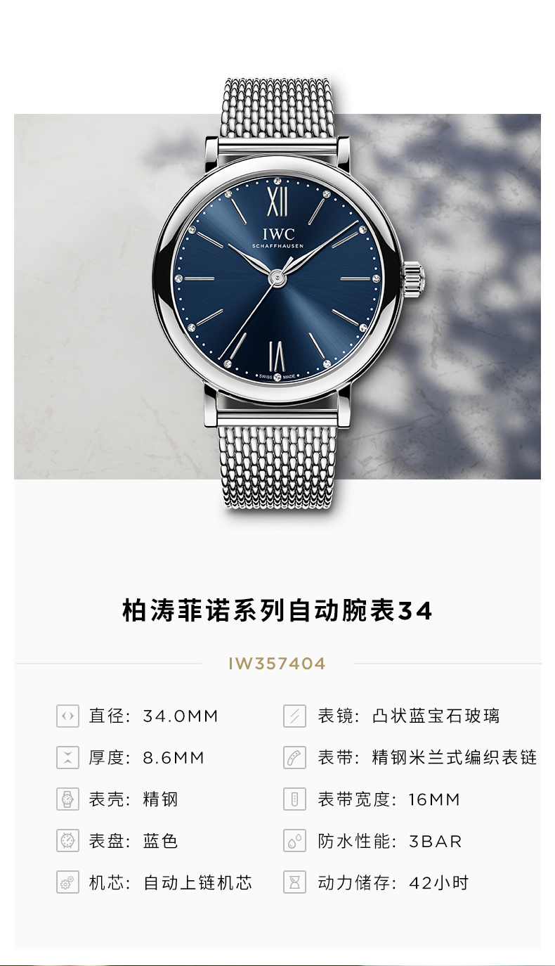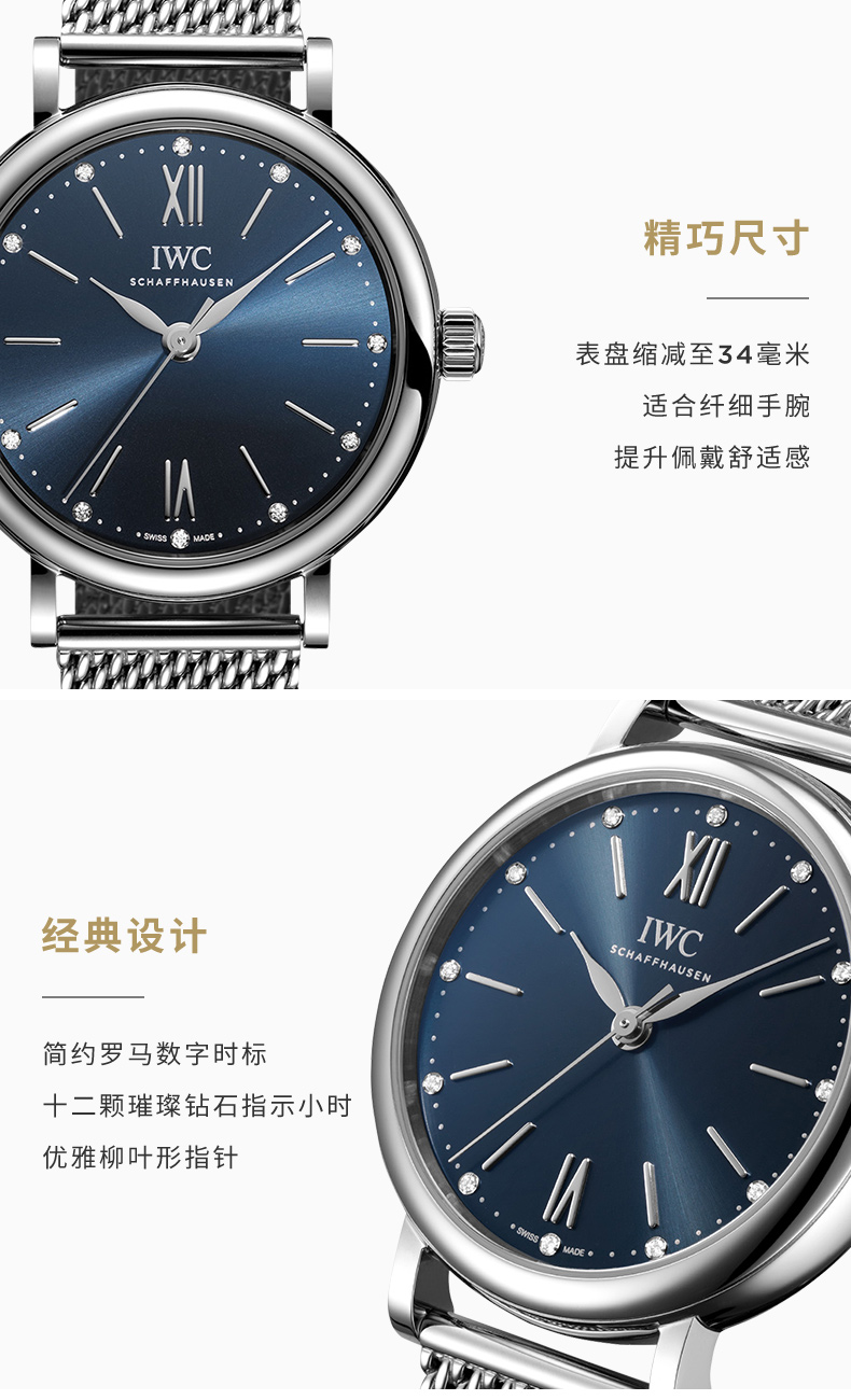 IWC万国 柏涛菲诺系列自动机械计时男女腕表(34mm) IW357404 蓝色