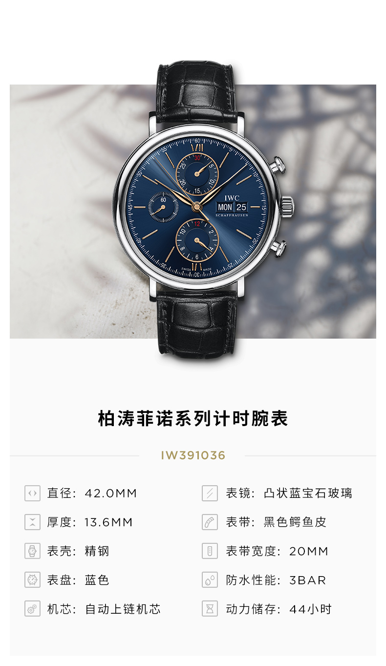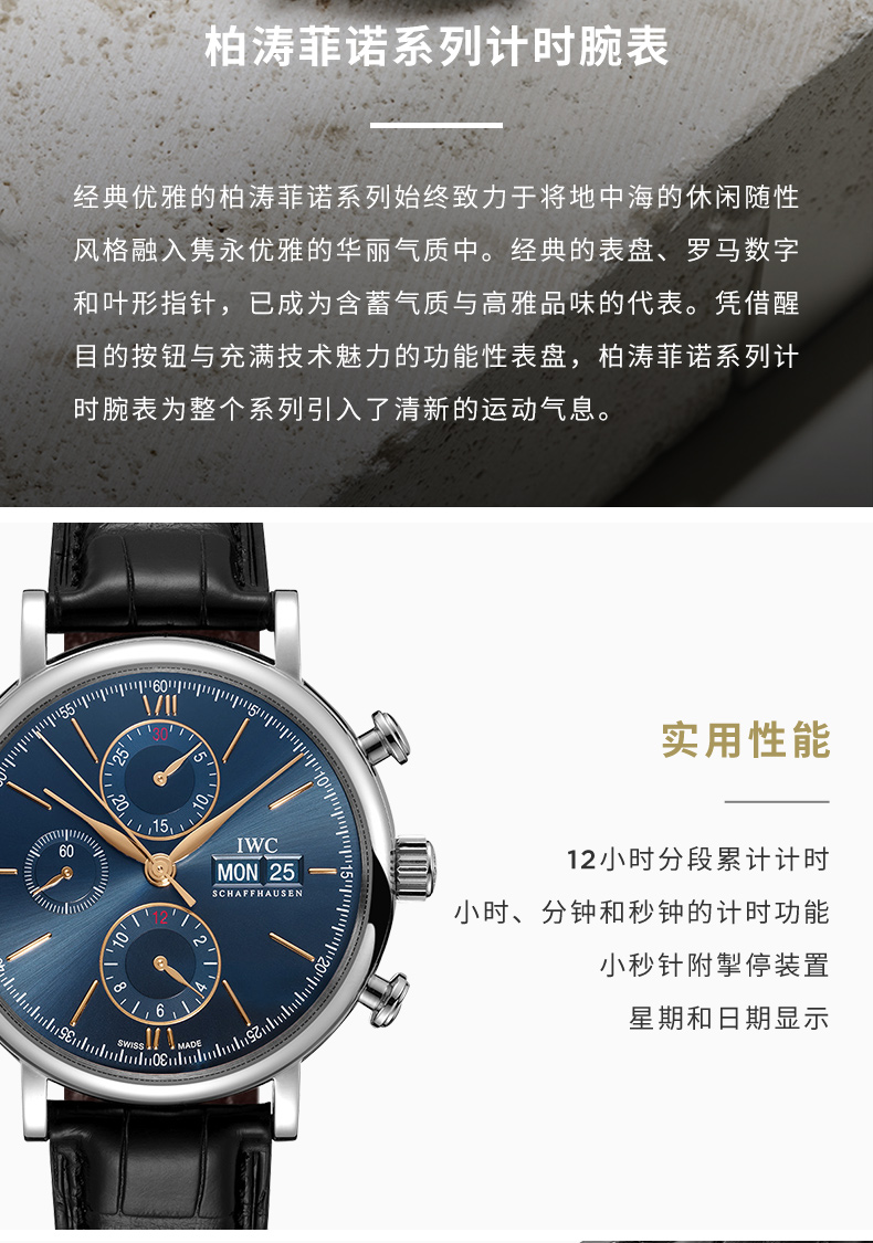 IWC万国 柏涛菲诺系列自动机械计时男士腕表(42mm) IW391036(单位:只) 蓝色