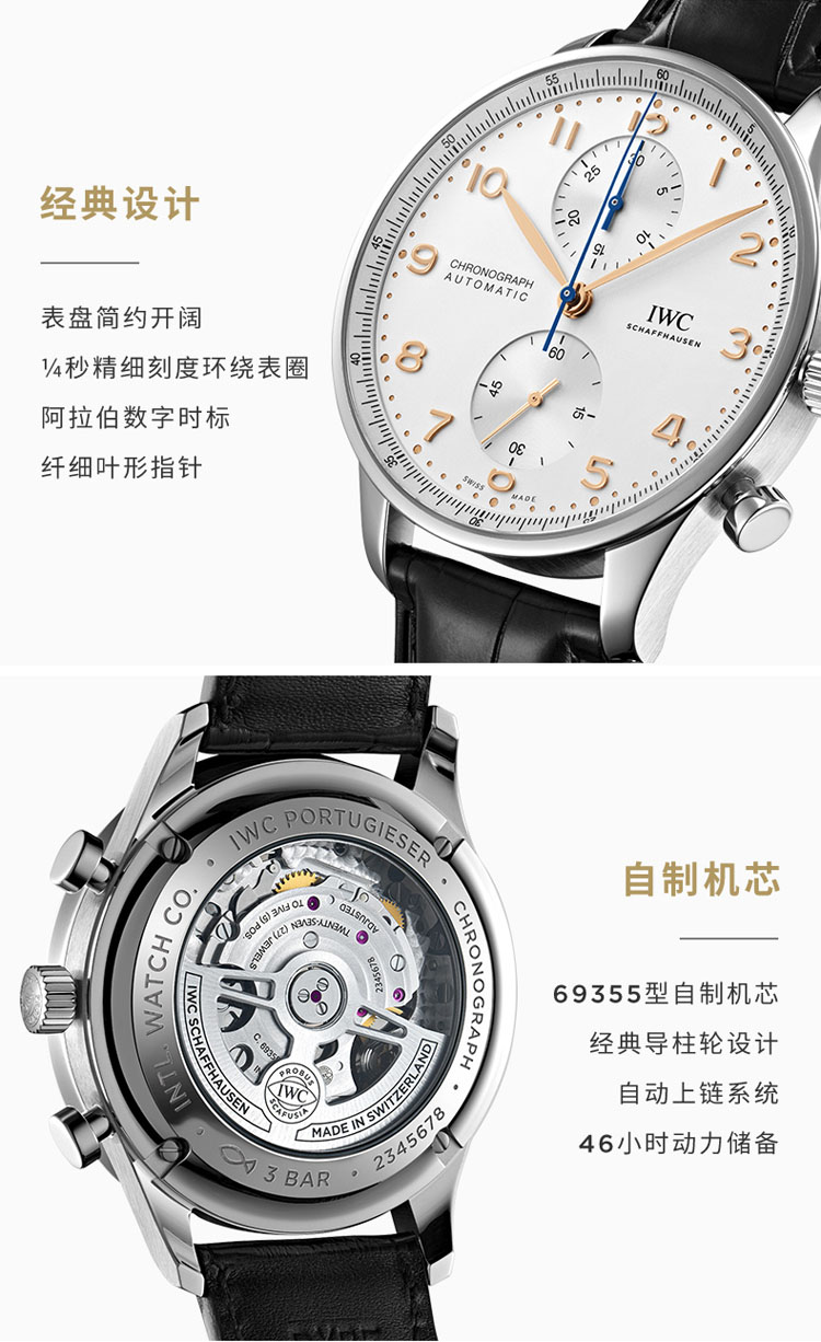 IWC万国 葡萄牙系列计时机械手表男女士腕表(41mm) IW371604 单位:块 镀银/黑色