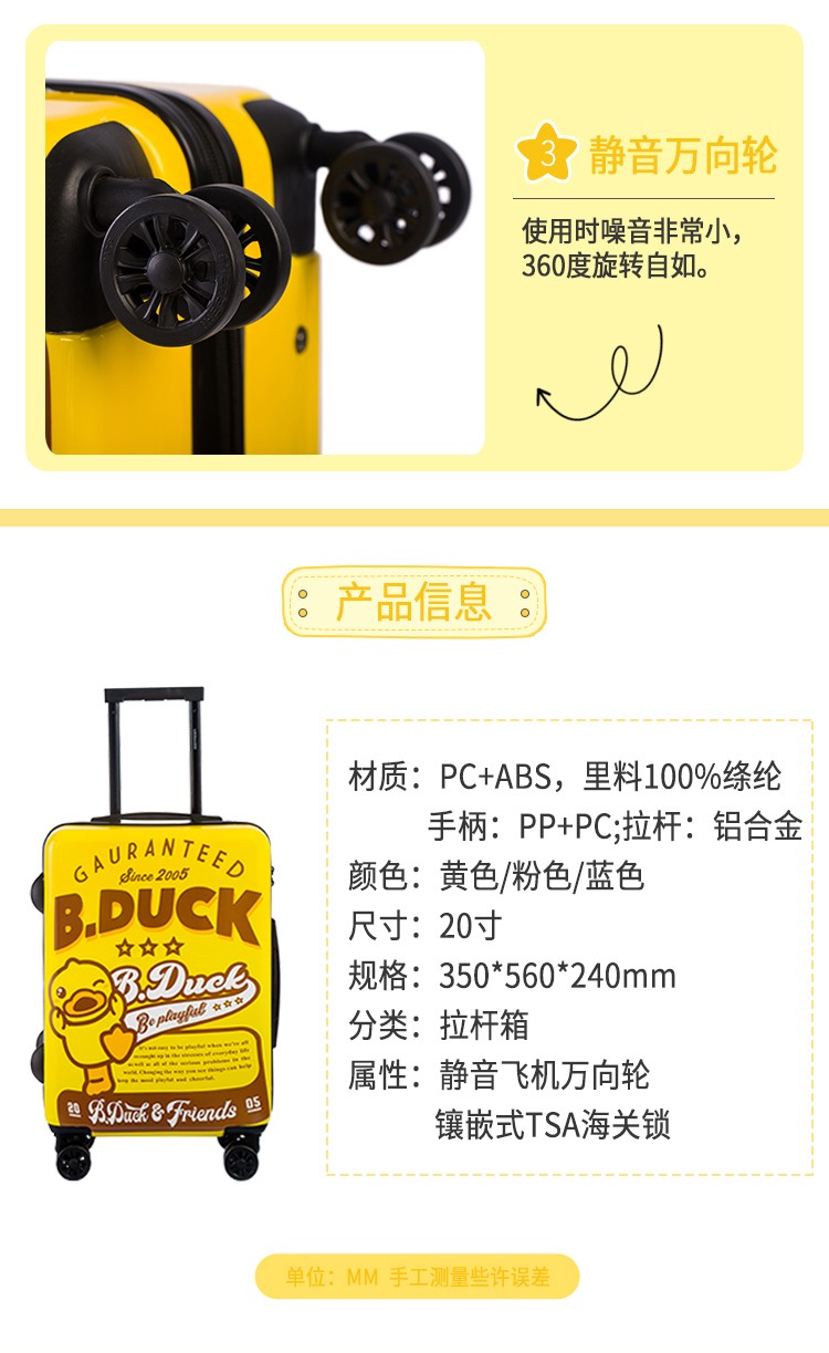乐扣乐扣(Lock&Lock)小黄鸭联名款拉杆箱LY110001(20寸)(单位:个) 黄色 20寸
