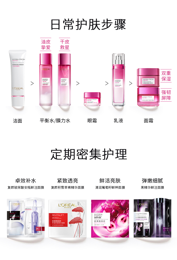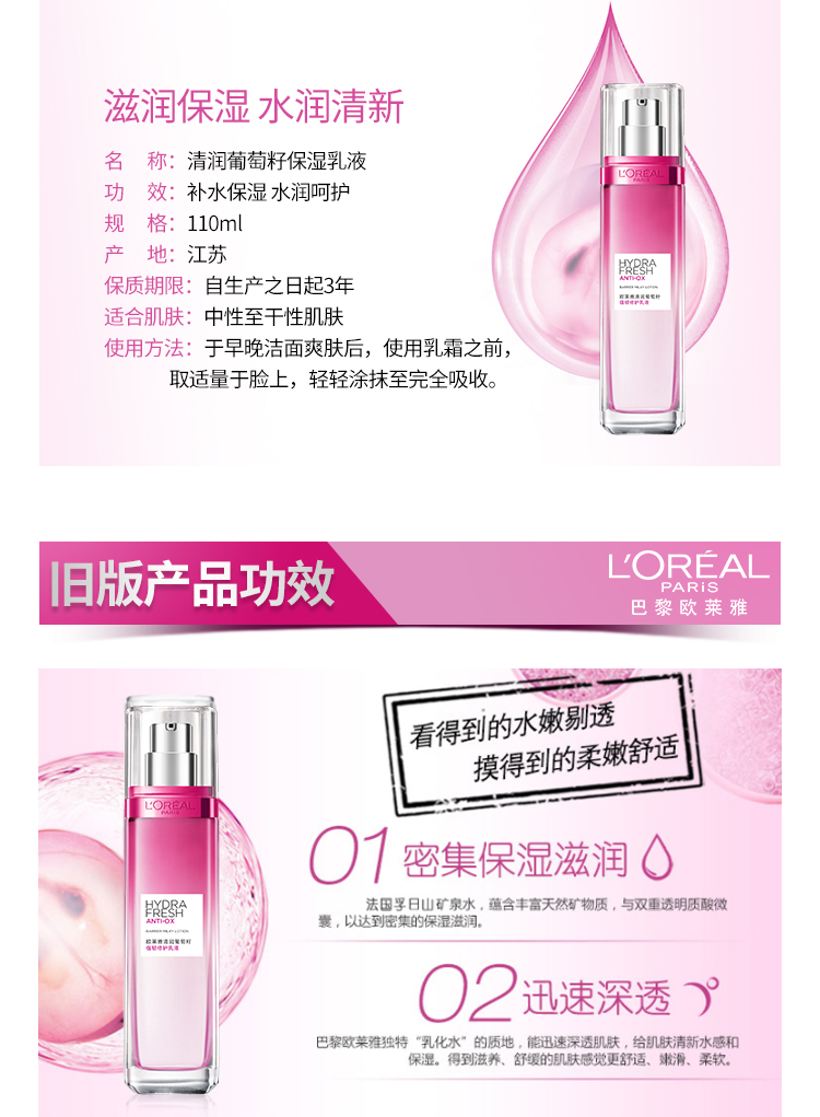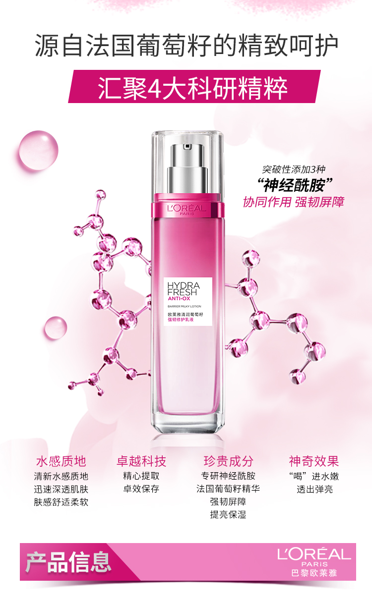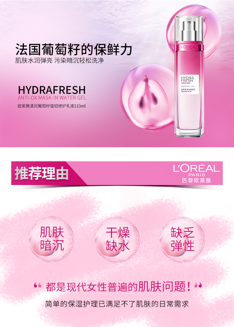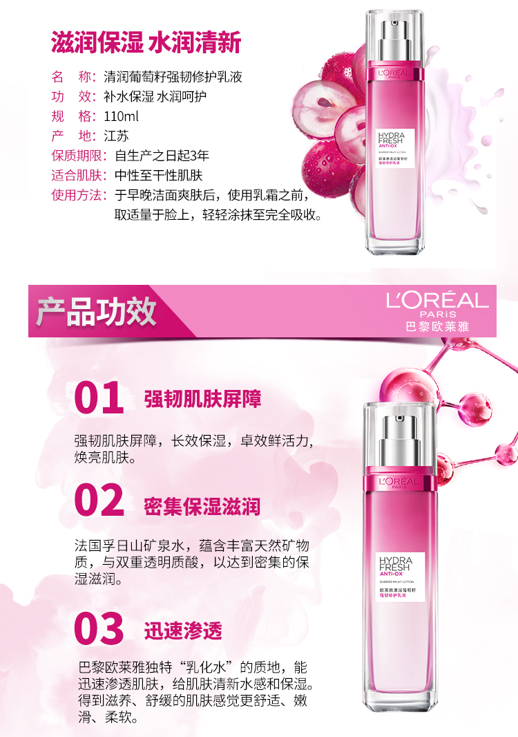 欧莱雅(LOREAL ) 葡萄籽强韧修护 110ml 保湿乳液 枚粉色(单位:瓶)