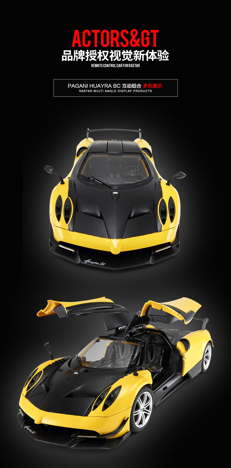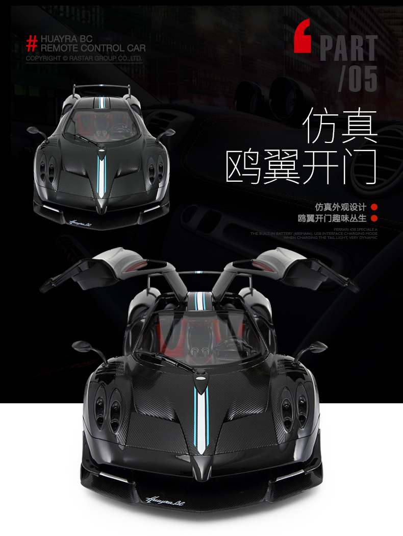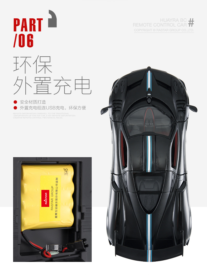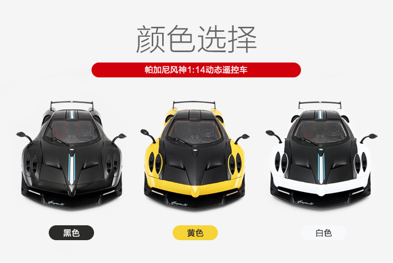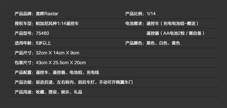 RASTAR 星辉 1:14帕加尼风神 儿童遥控汽车模型 外置充电 75460 黄/白/黑 随机