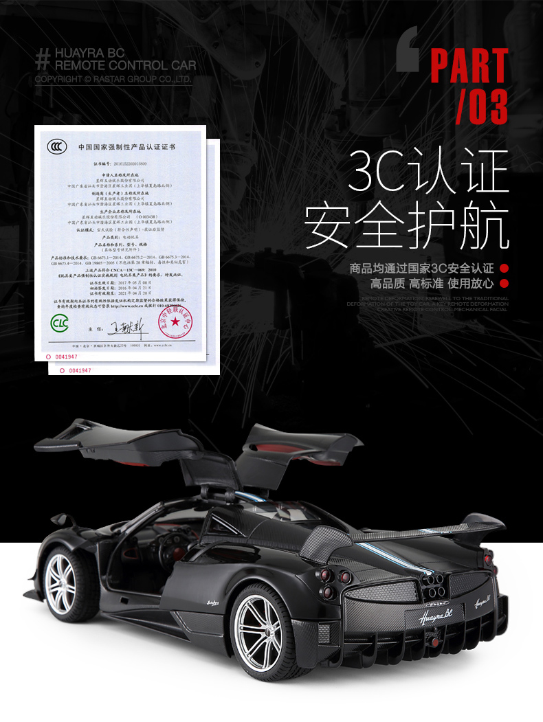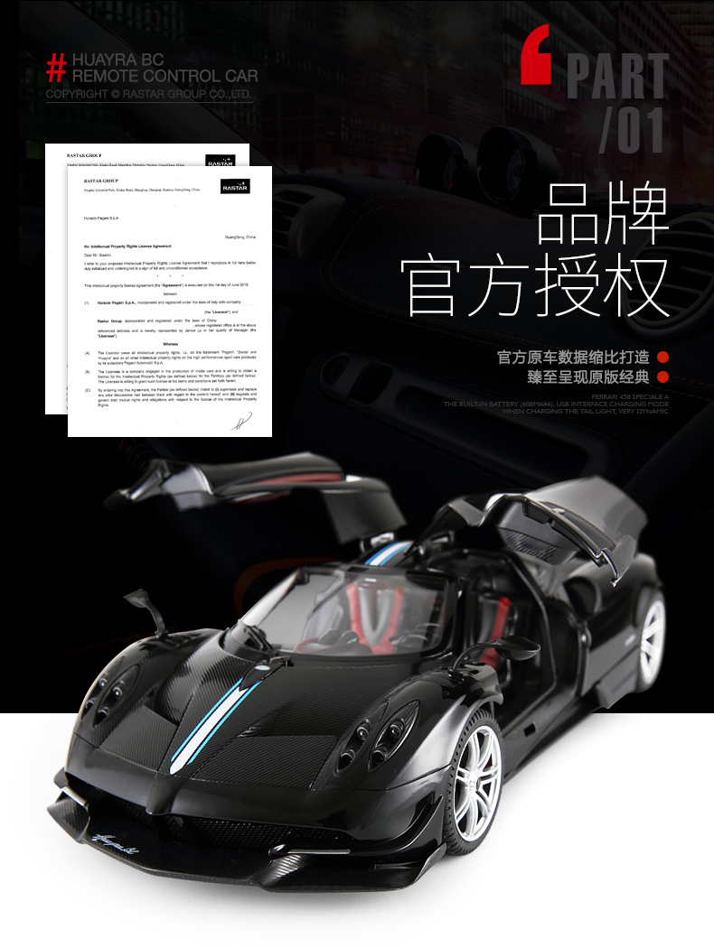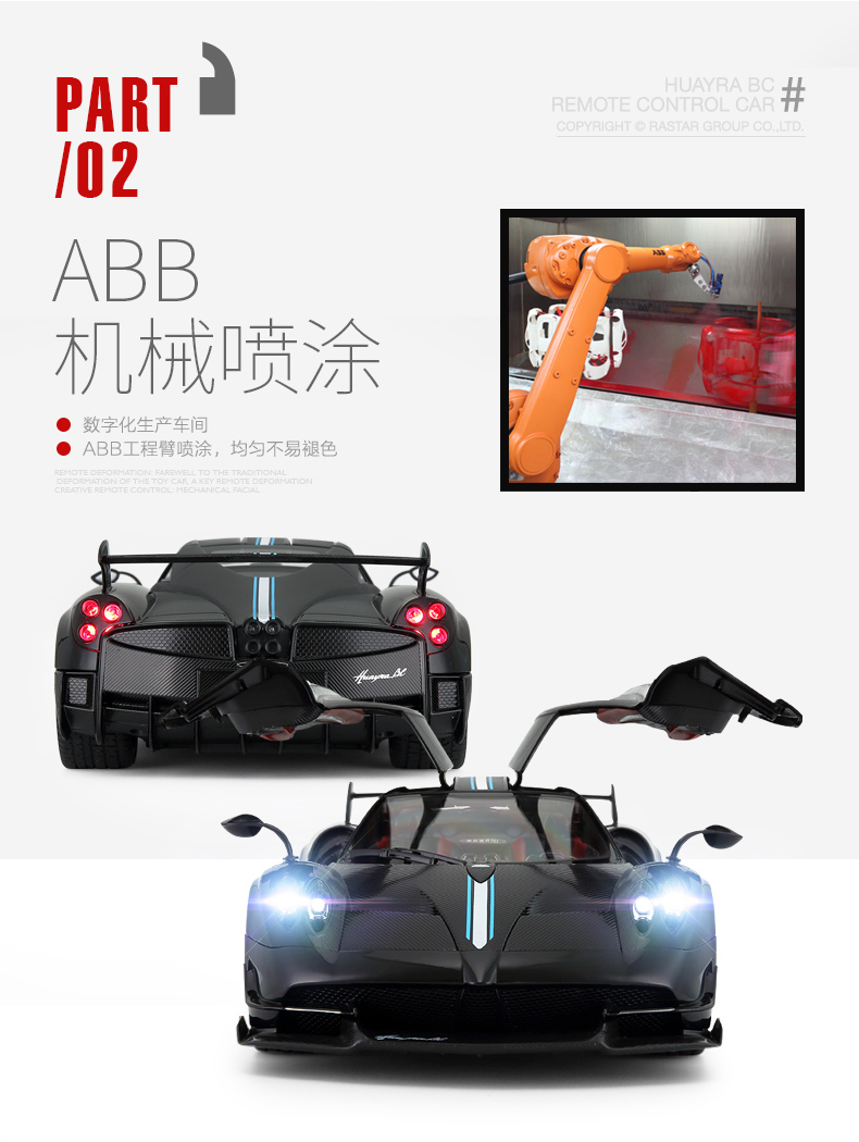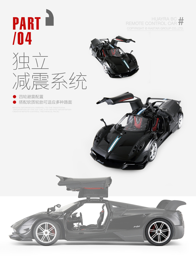 RASTAR 星辉 1:14帕加尼风神 儿童遥控汽车模型 外置充电 75460 黄/白/黑 随机