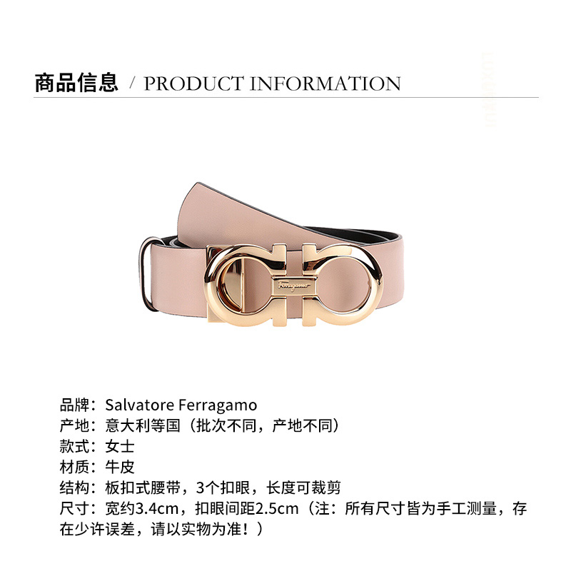 Salvatore Ferragamo 菲拉格慕女士板扣式双面皮带 Z11100293815/条 米色