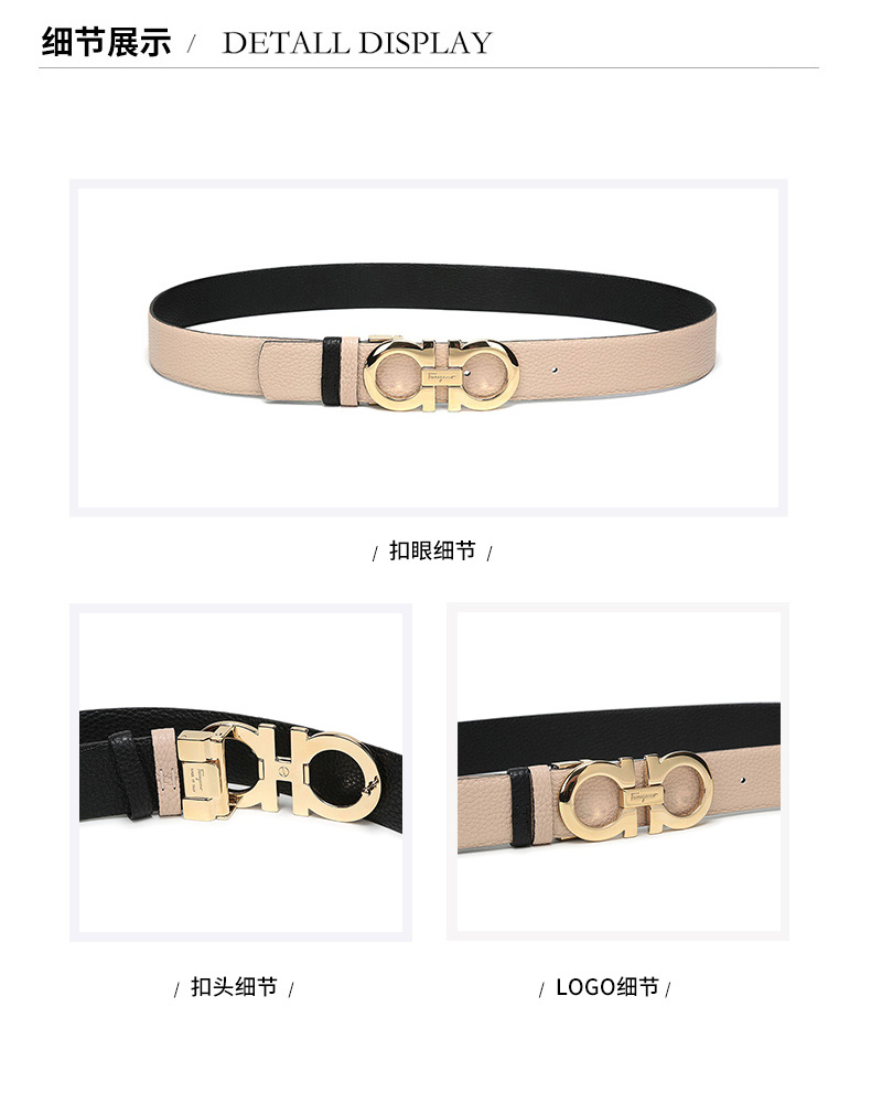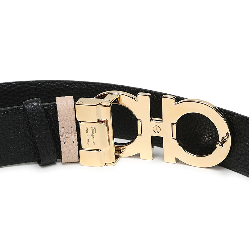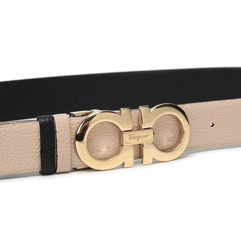 Salvatore Ferragamo 菲拉格慕女士牛皮板扣式双面皮带 Z11100223443/条 米色黑色