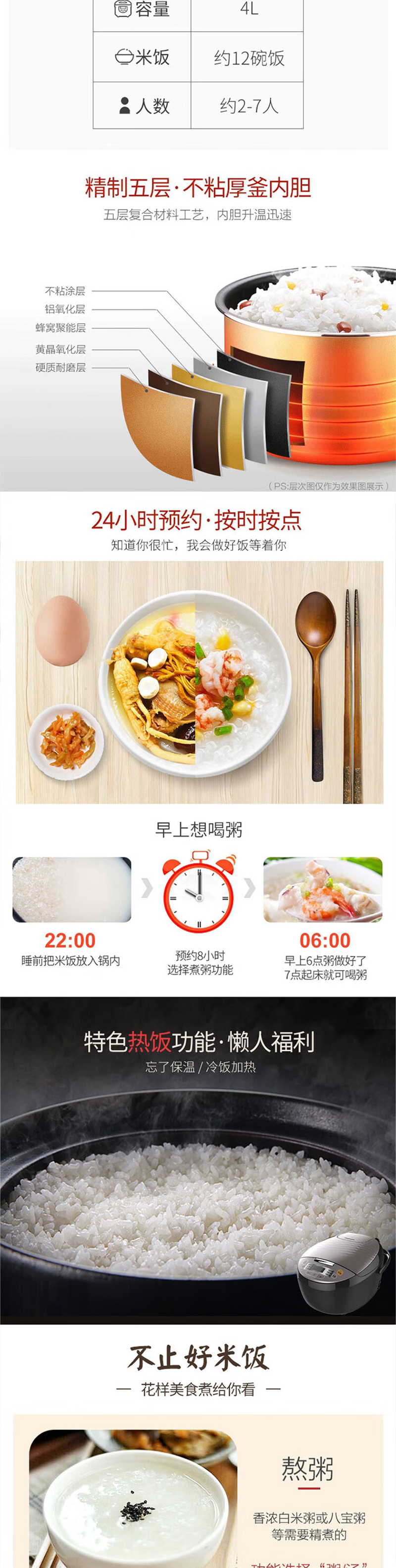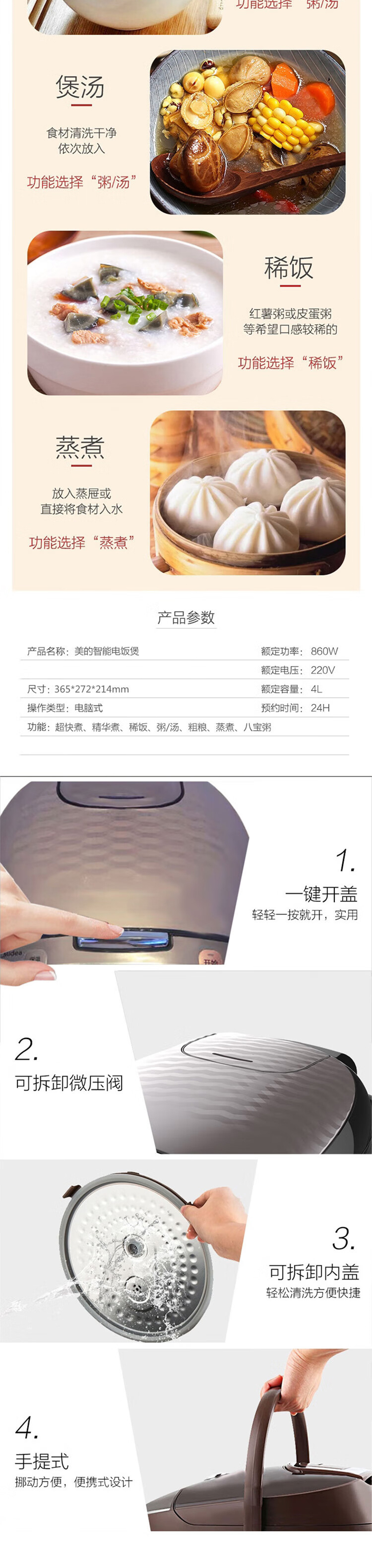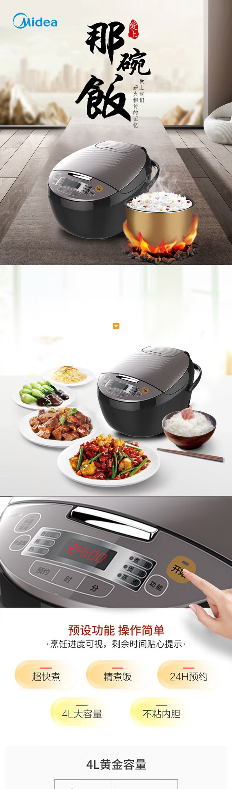 美的(Midea)电饭煲电饭锅 4L容量 RS4098(单位:台) 黑色