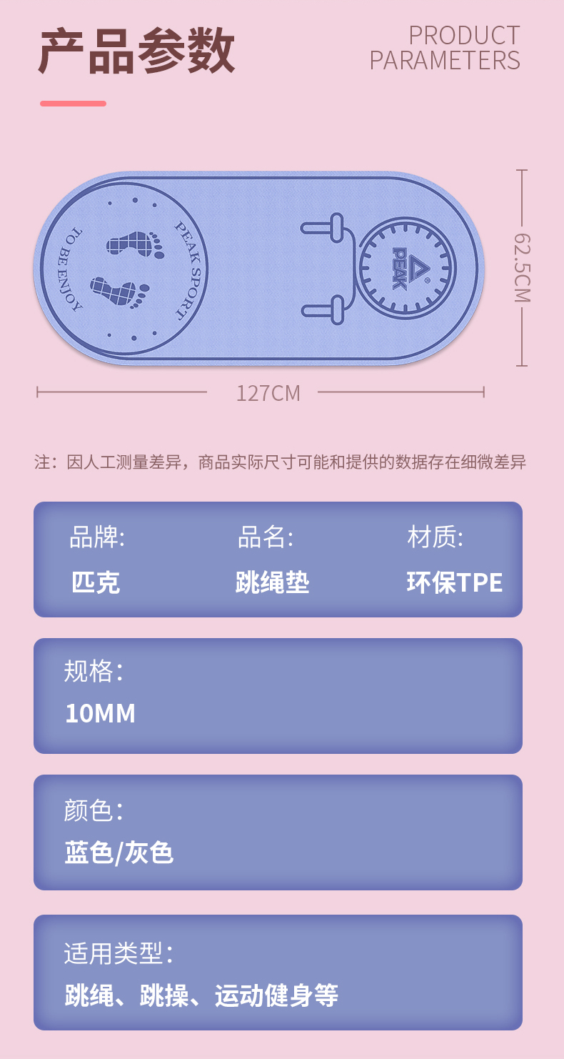 匹克(PEAK)跳绳垫 室内TPE垫子跳操垫舞蹈垫男女款专业运动隔音减震家用防滑地垫 蓝色 液太天河