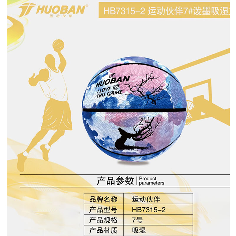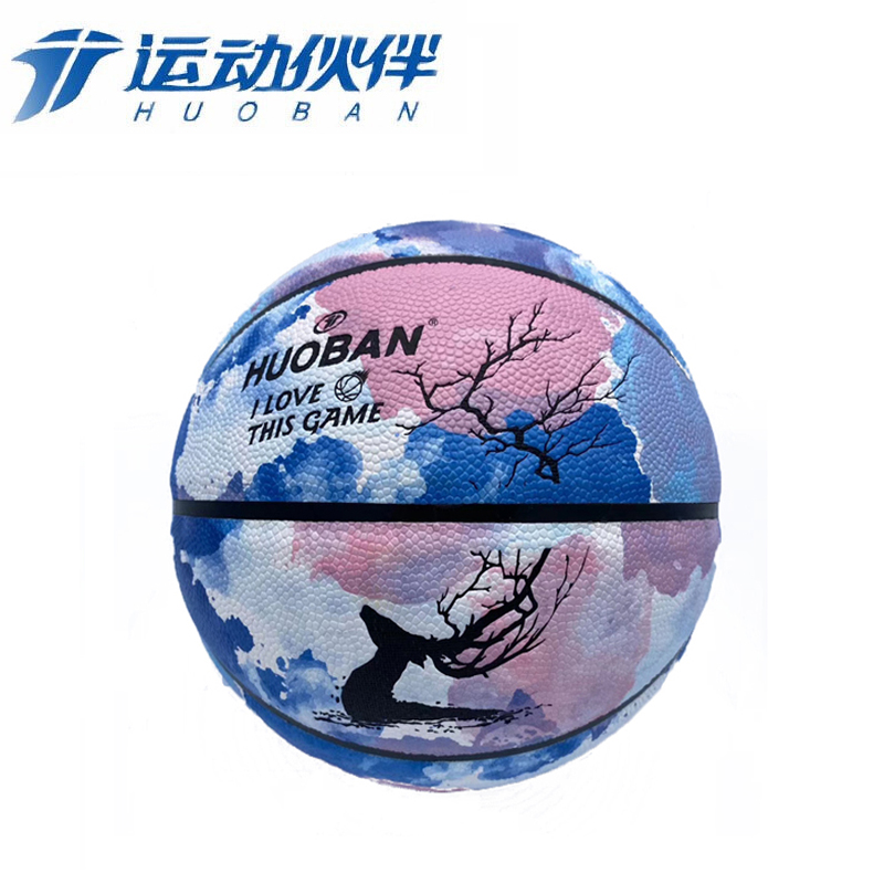 运动伙伴 青少年篮球训练比赛娱乐篮球 7#泼墨吸湿篮球/HB7315-2 蓝色