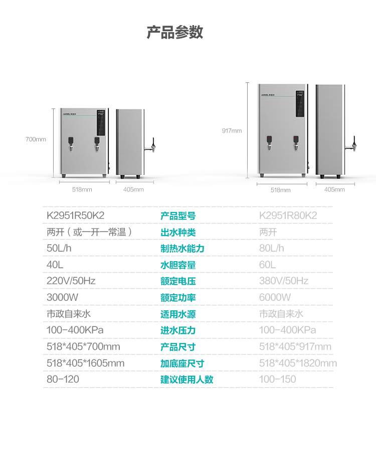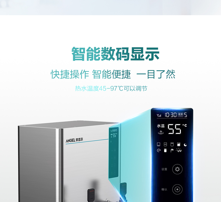 安吉尔(Angel )步进式开水器商用不锈钢电热开水机 全自动进水智能变容开水器K2951R50K2 50L/H 银色