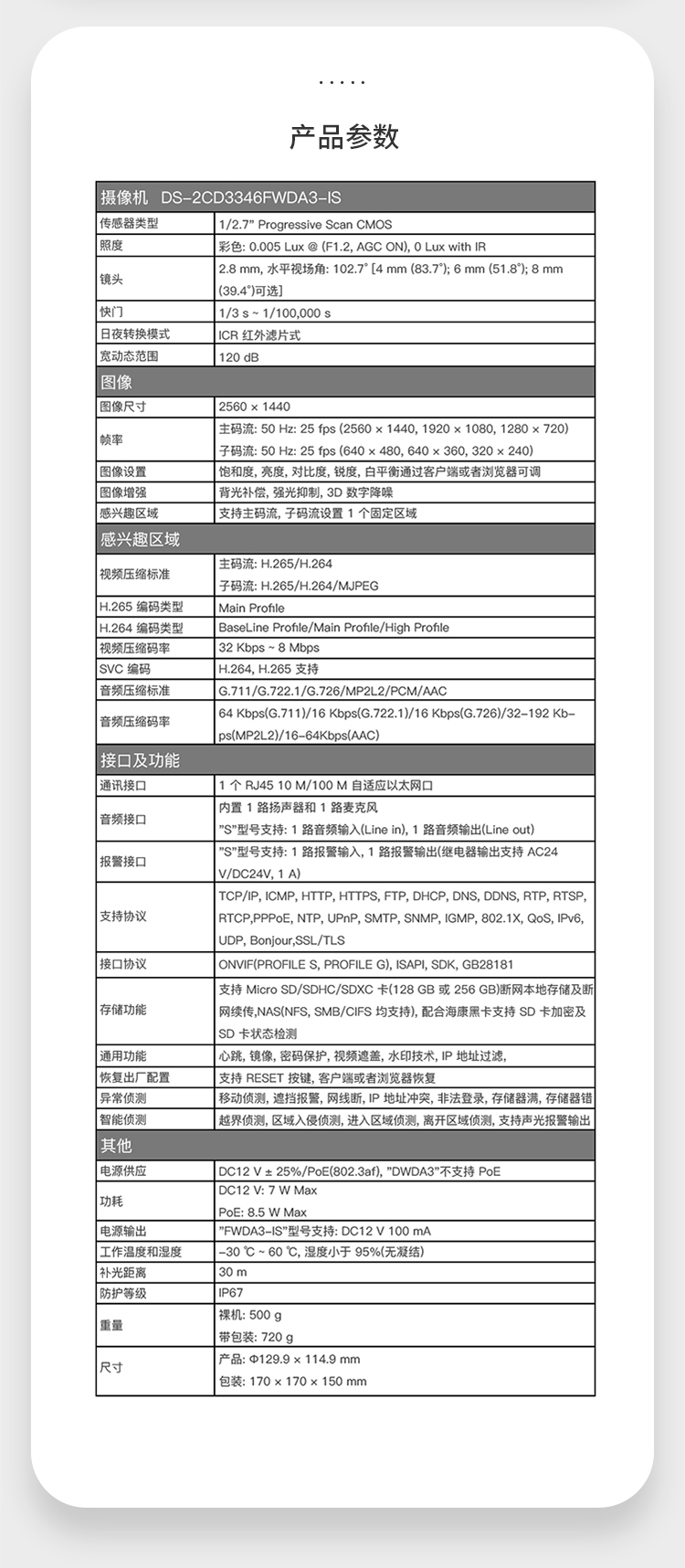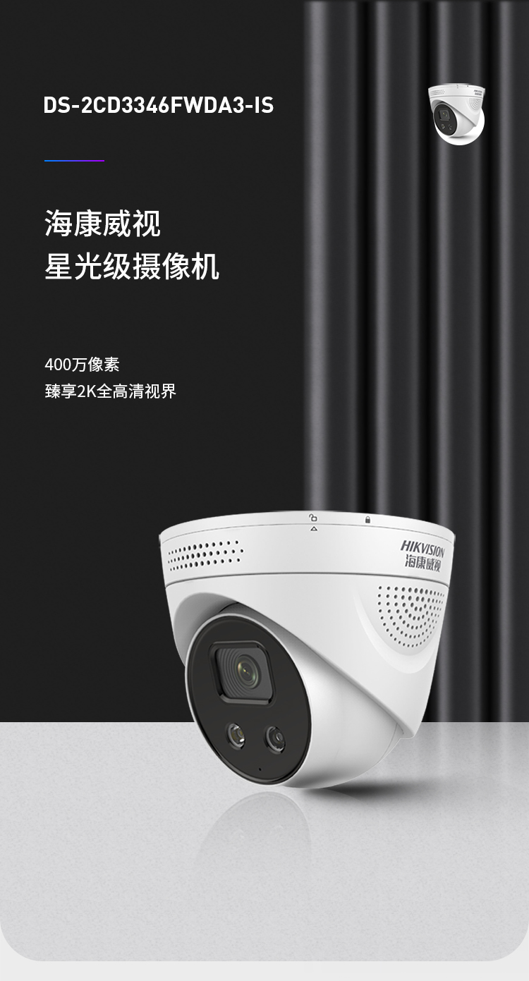 海康威视HIKVISION监控摄像头400万2K高清星光夜视室内室外智能警戒摄像机音频报警网线供电3346FWDA3-IS 4mm 白色