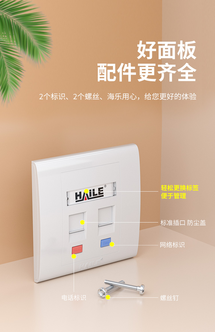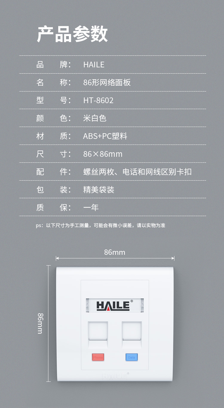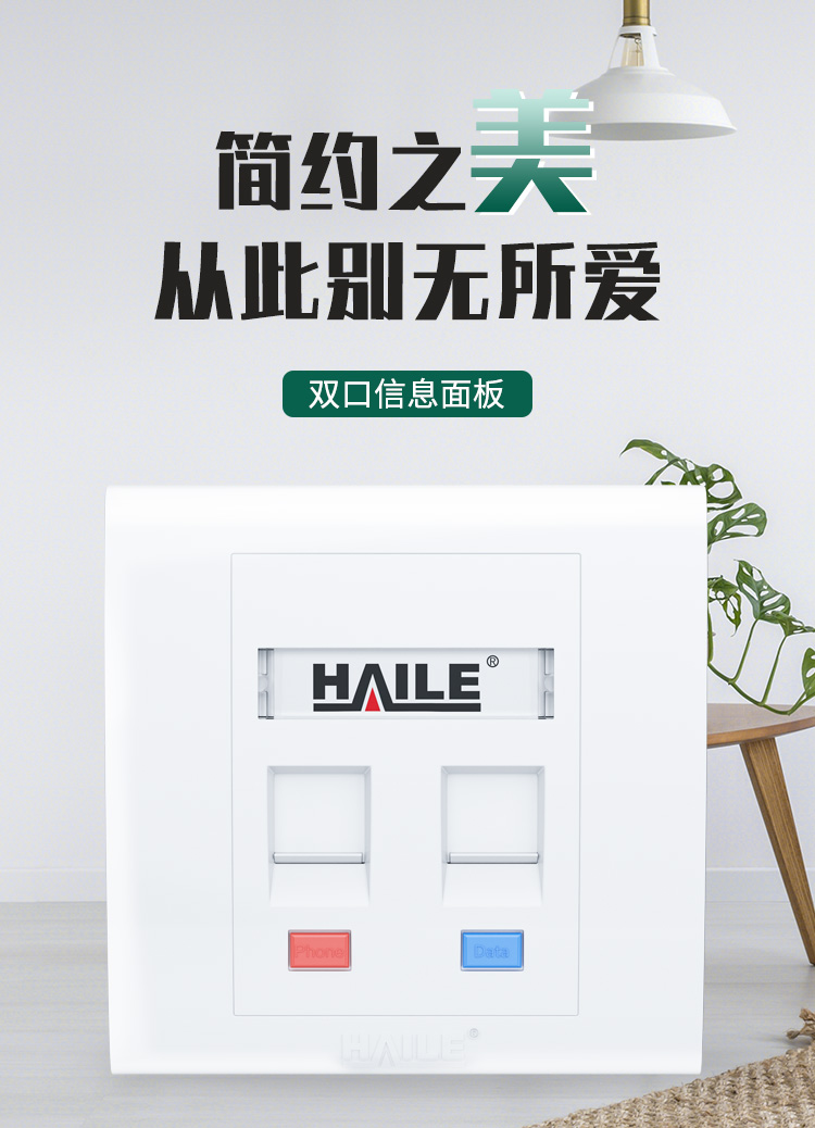 海乐(Haile)86型双口网络信息面板/网线插座/电脑插座/网络信息插座 白色HT-8602 十个装 白色