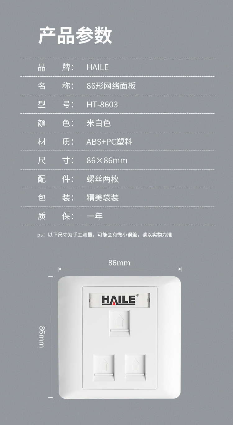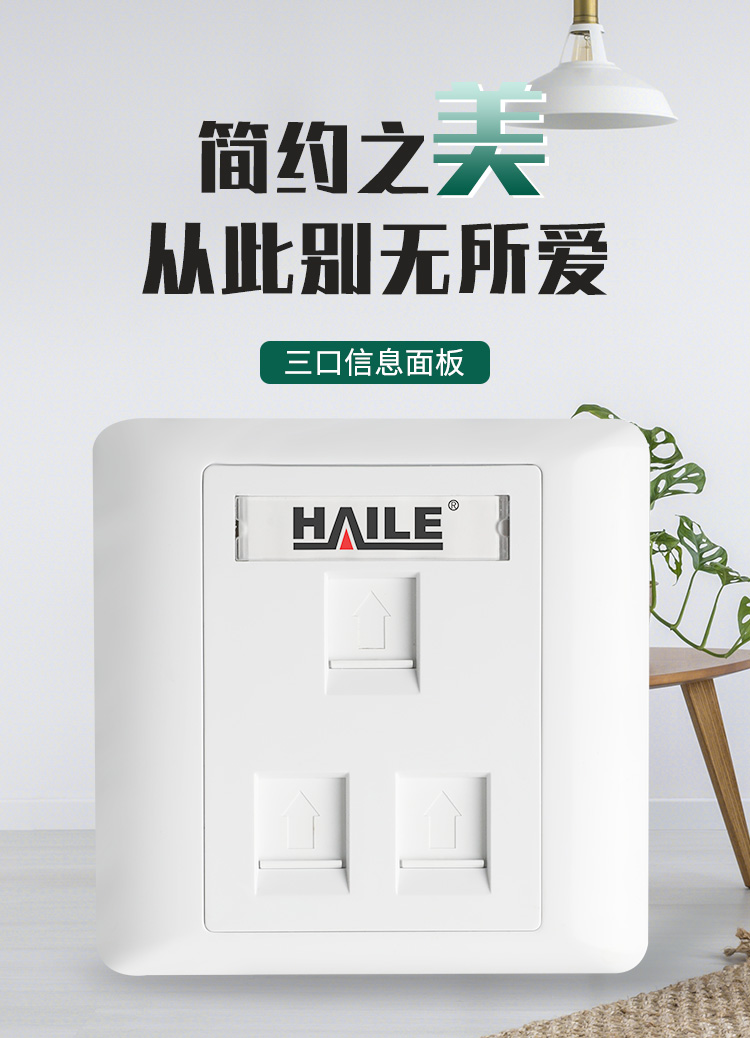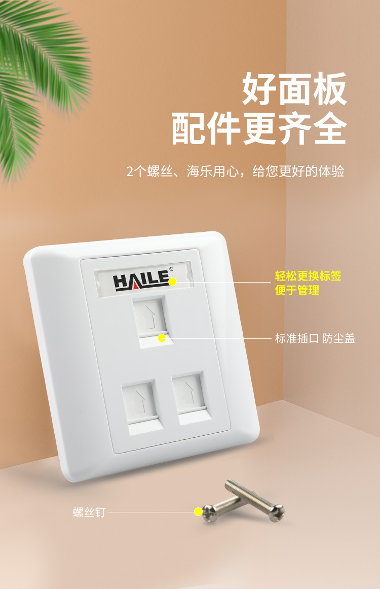 海乐(Haile)86型三口网络信息面板/网线插座/电脑插座/网络信息插座 白色HT-8603 十个装 白色