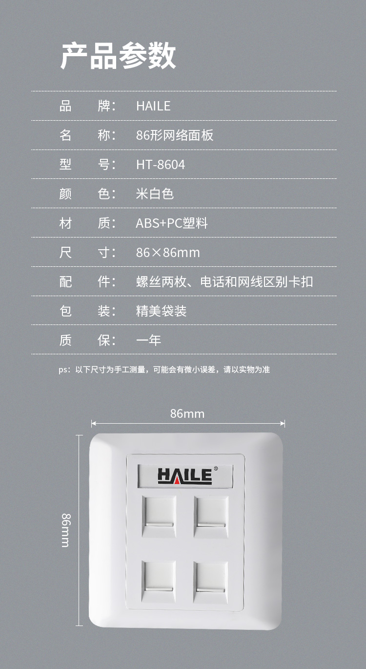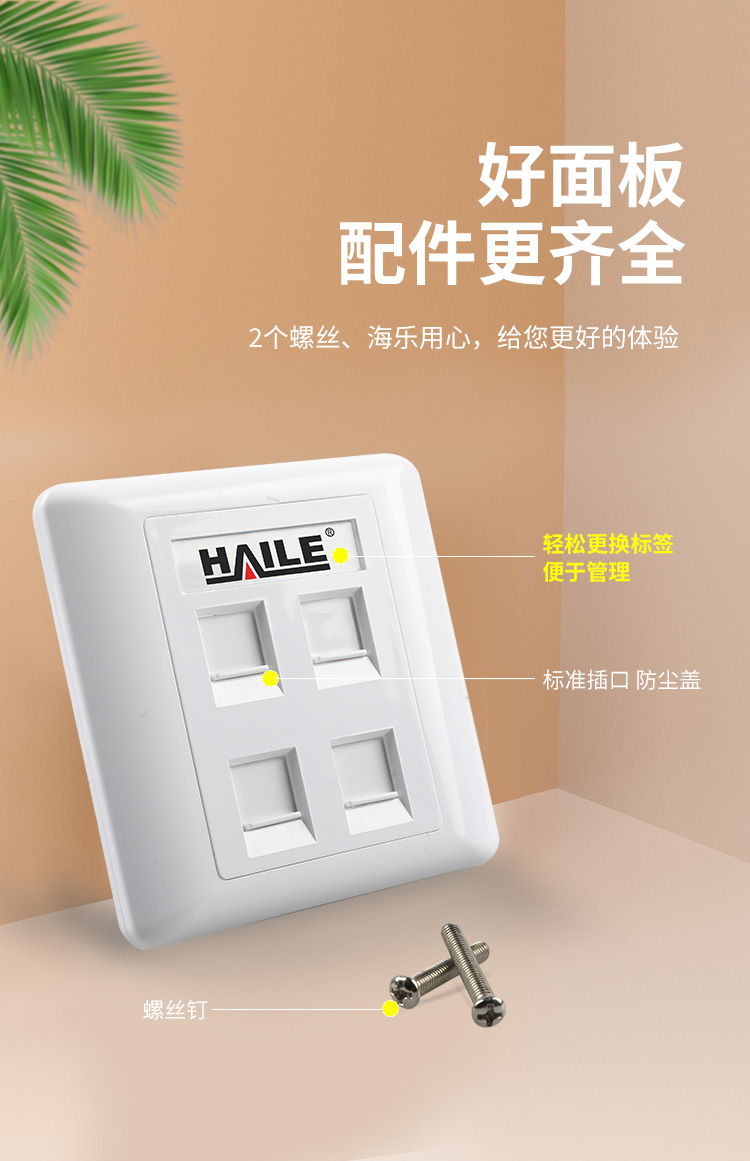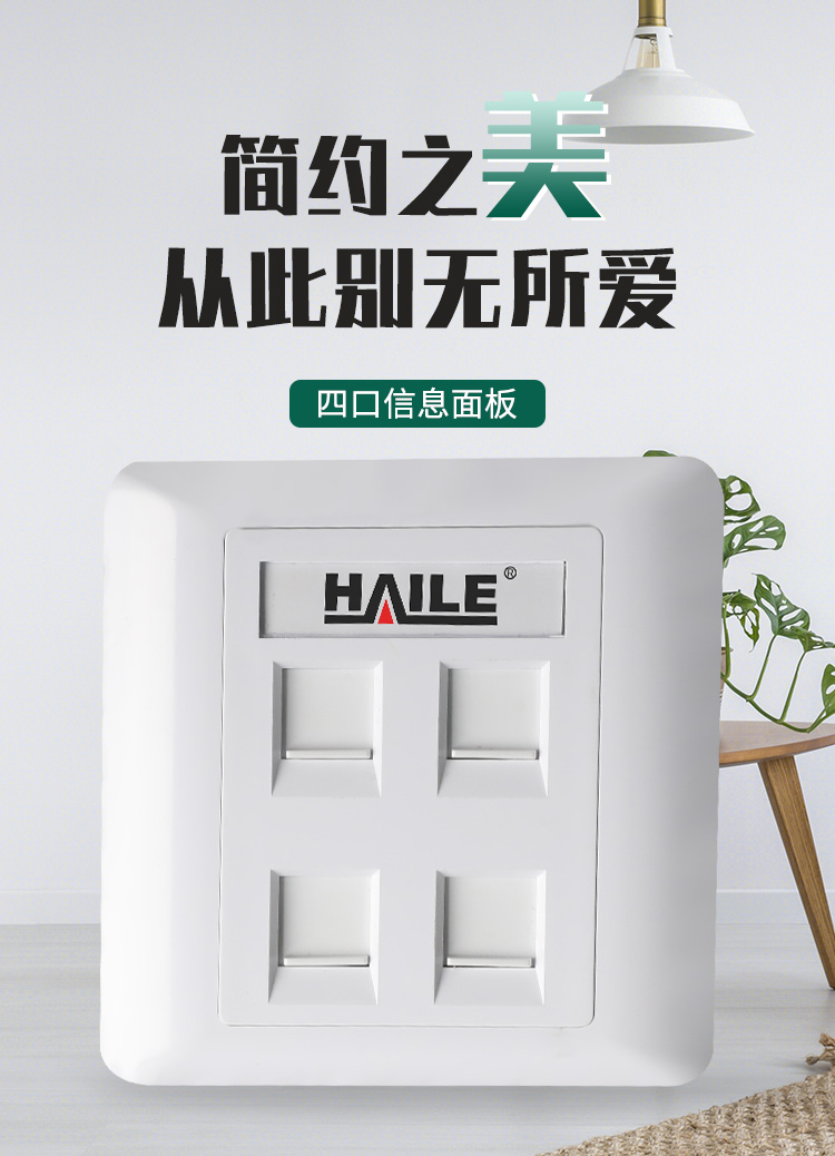 海乐(Haile)86型四口网络信息面板/网线插座/电脑插座/网络信息插座 白色HT-8604 十个装 白色