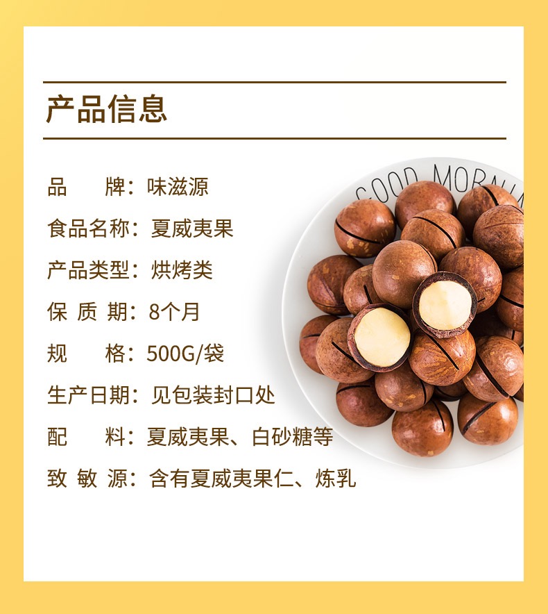 味滋源坚果组合500g袋装每日坚果零食大礼包碧根果干果年货送礼 夏威夷果500g 天蓝色 500g