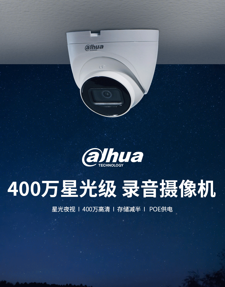 中文大华400万星光红外定焦海螺网络摄像机 白色