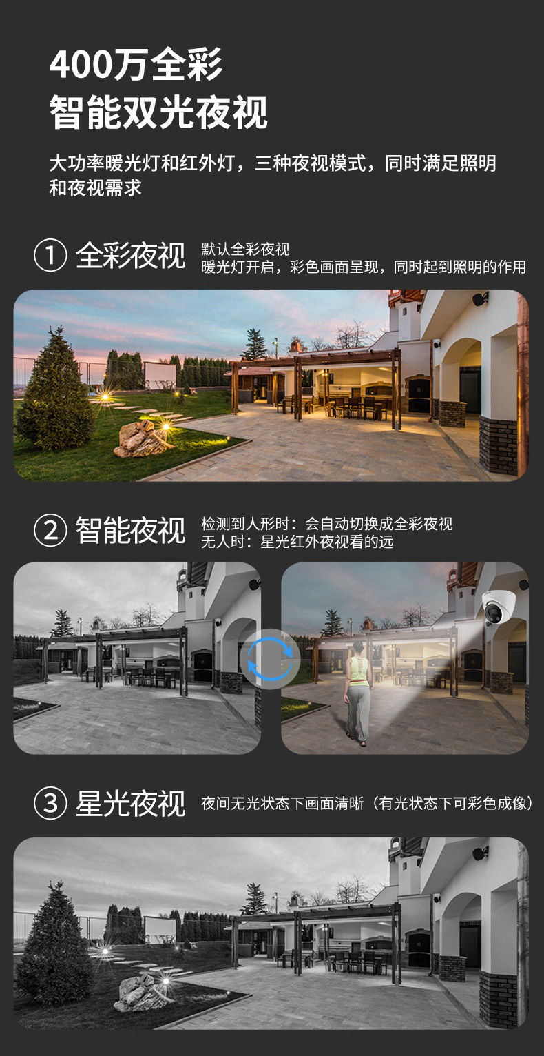 中文大华400万双光全彩定焦海螺网络摄像机 白色