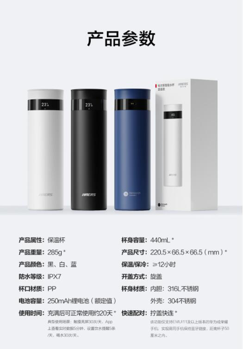 华为智选 哈尔斯智能保温杯440ml 旋盖款 白色