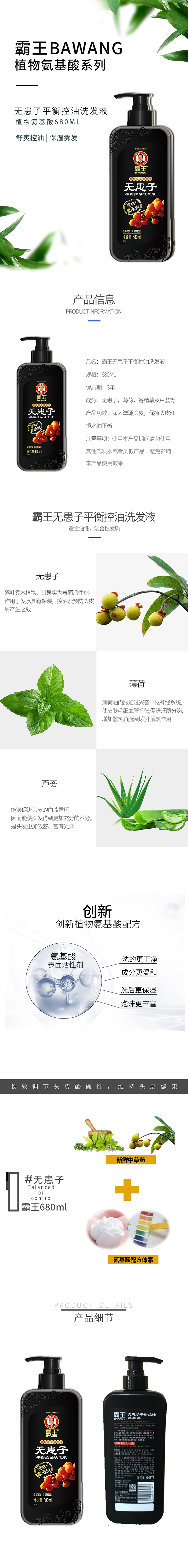 霸王无患子平衡控油洗发液680ml 黑色