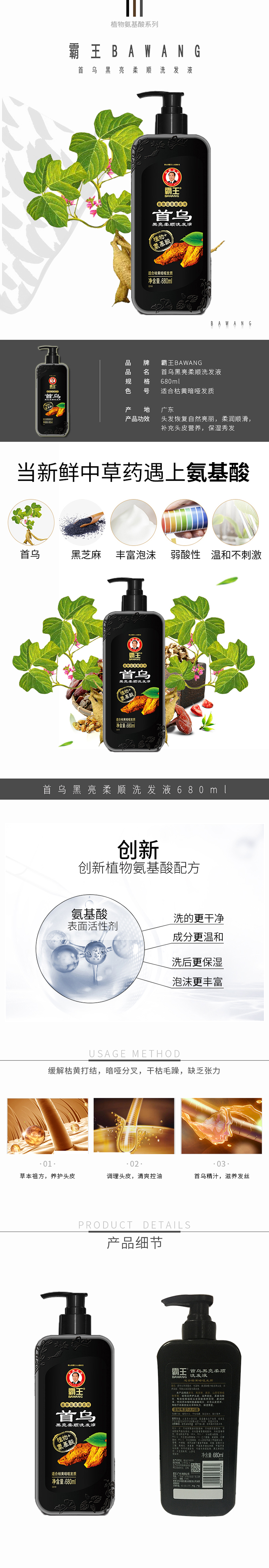 霸王首乌黑亮柔顺洗发液680ml 黑色