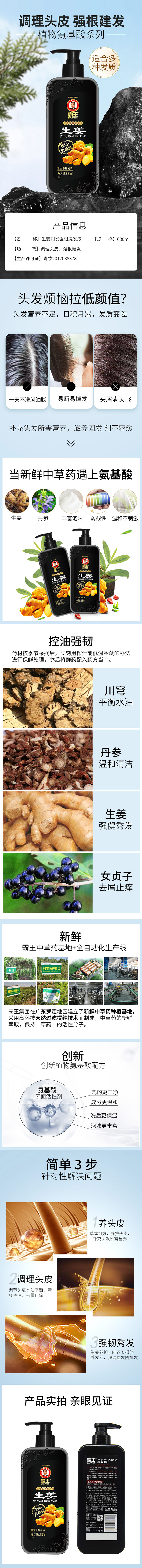 霸王生姜润发强根洗发液680ml 黑色